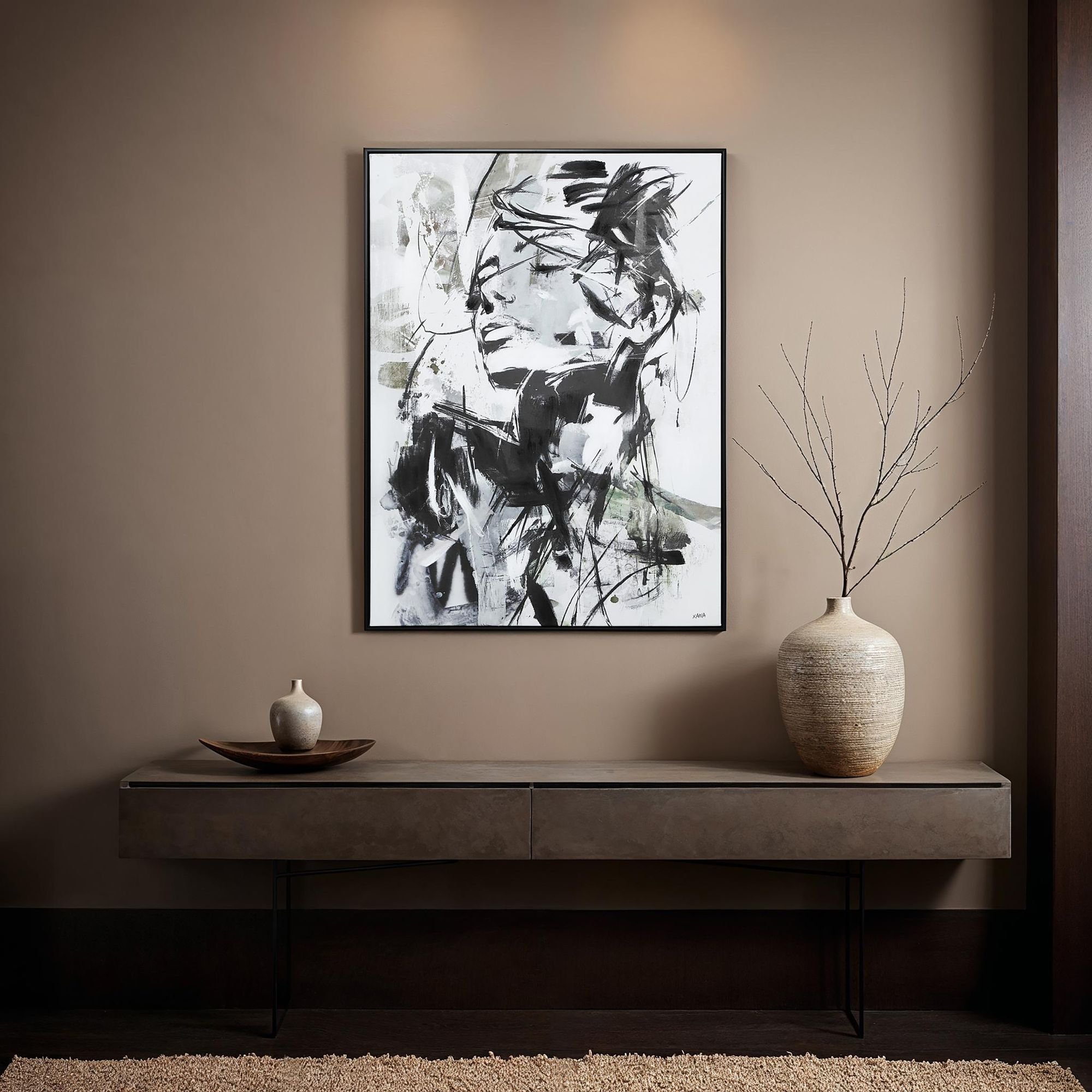 Look too fast and you might miss the hidden beauty within this abstract painting. Created in shades of black and neutral hues, the subtle feminine silhouette draws you in and bounces your gaze along its textured surface. Sure to provide exactly the update needed in any contemporary space, this piece is ready for a lifetime in the spotlight.