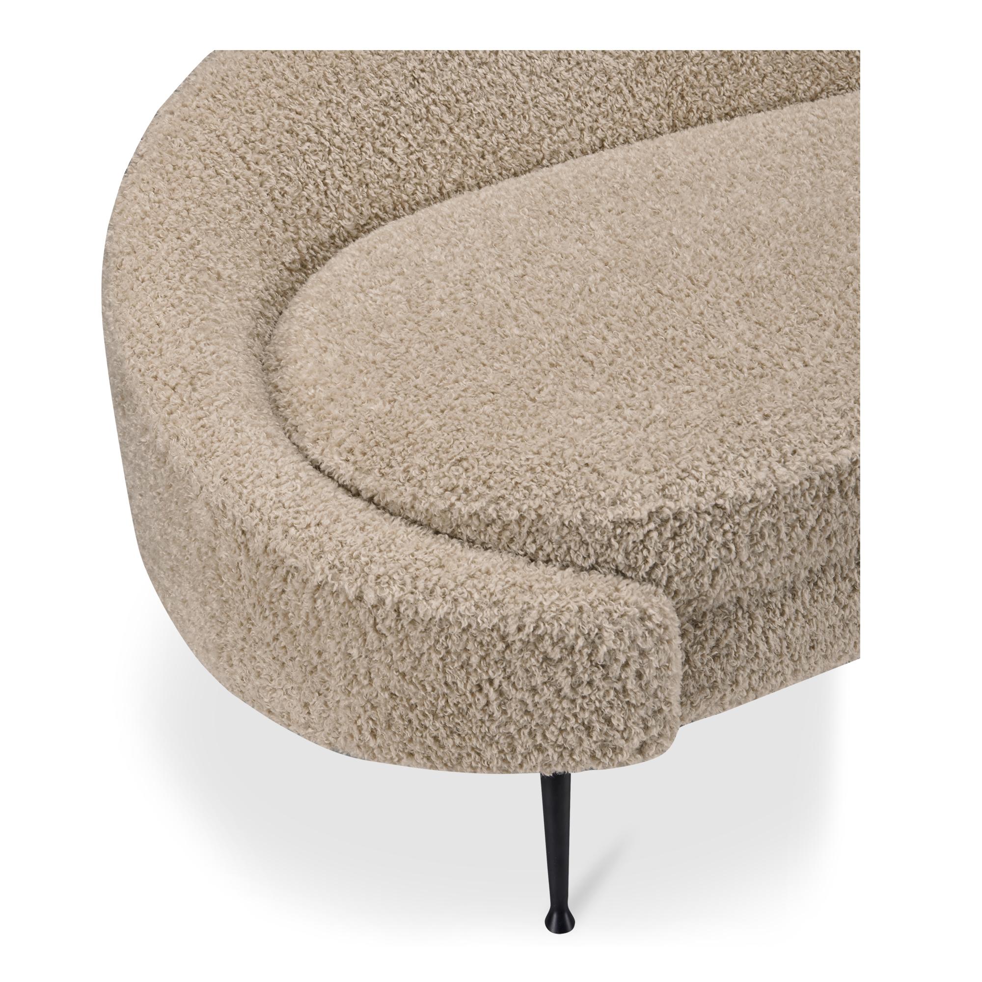 The Abigail chaise invites you to recline and savor the moment. With its asymmetrical back and faux shearling texture, it’s like lounging on a cloud from a bygone era. Black stainless-steel legs add a touch of modern appeal and timeless taste, effortlessly combining comfort and style.