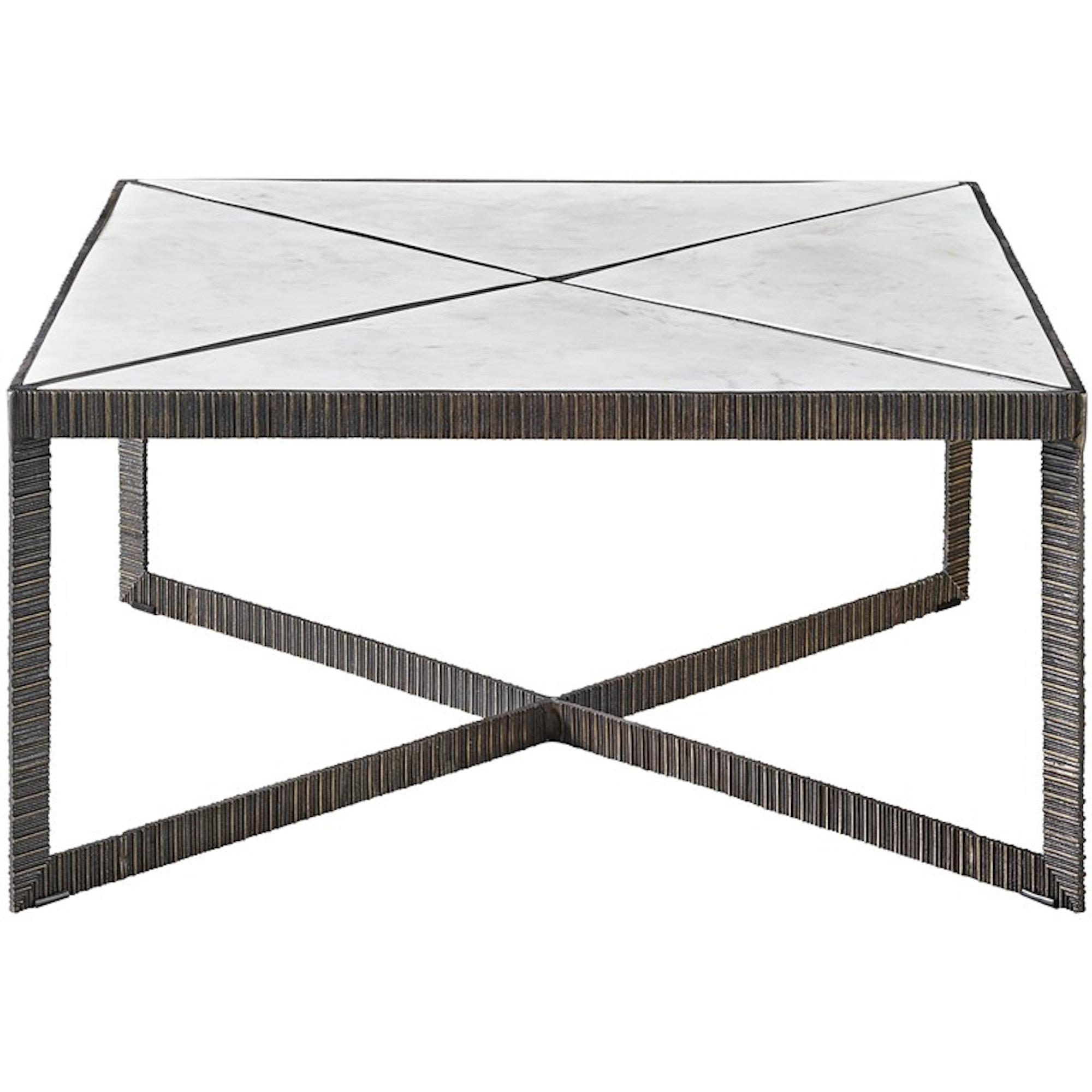 A thoughtful play on opposites, the Abstraction Cocktail Table features a balance of light and dark finishes meticulously paired with surfaces both smoothed and ridged, creating ultimate intrigue.