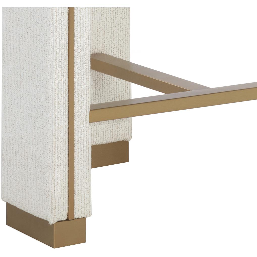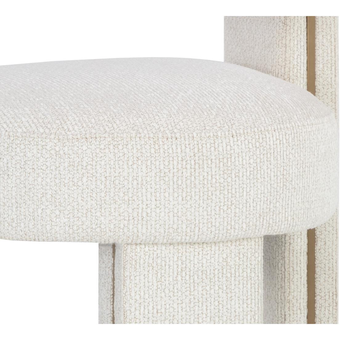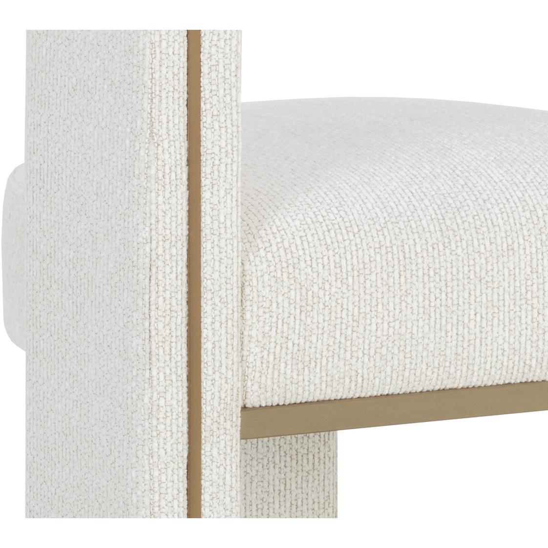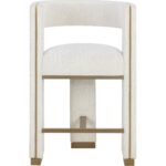 Perfectly poised with a distinct three-legged design, the Adamina Counter Stool will leave a lasting impression. Powder-coated gold metal detailing enhances the plush texture of our rhea light barley performance fabric for a stylish seating solution. Performance fabric is moisture repellent, durable and easy to clean.