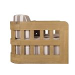 - Contemporary, design-forward piece with curved windowpane detailing that nods to vintage references