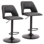 Wide, spacious seat and high-back with a cutout design – these stools are all about comfort and style! The adjustable height makes it easy to use for bar or counter heights. Easy-to-wipe faux leather upholstery and matte black post and base come together for a clean, simple look that will work in any décor space. Perfect for formal entertaining or casual, everyday kitchen seating.