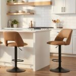 Wide, spacious seat and high-back with a cutout design – these stools are all about comfort and style! The adjustable height makes it easy to use for bar or counter heights. Easy-to-wipe faux leather upholstery and matte black post and base come together for a clean, simple look that will work in any décor space. Perfect for formal entertaining or casual, everyday kitchen seating.
