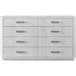 Finished in an opulent white sycamore hue, the Adore Dresser brings luxury to bedroom dwellings with six spacious drawers and abundant silver pulls.
