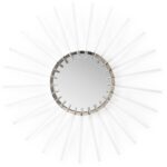 The classic sunburst shaped mirror has taken on a modern style with lucite bursts and polished nickel finish. Adriana mirror is a decorative accent that is just the right size for a focal point in any wall composition. Also see 301599 for a smaller size.