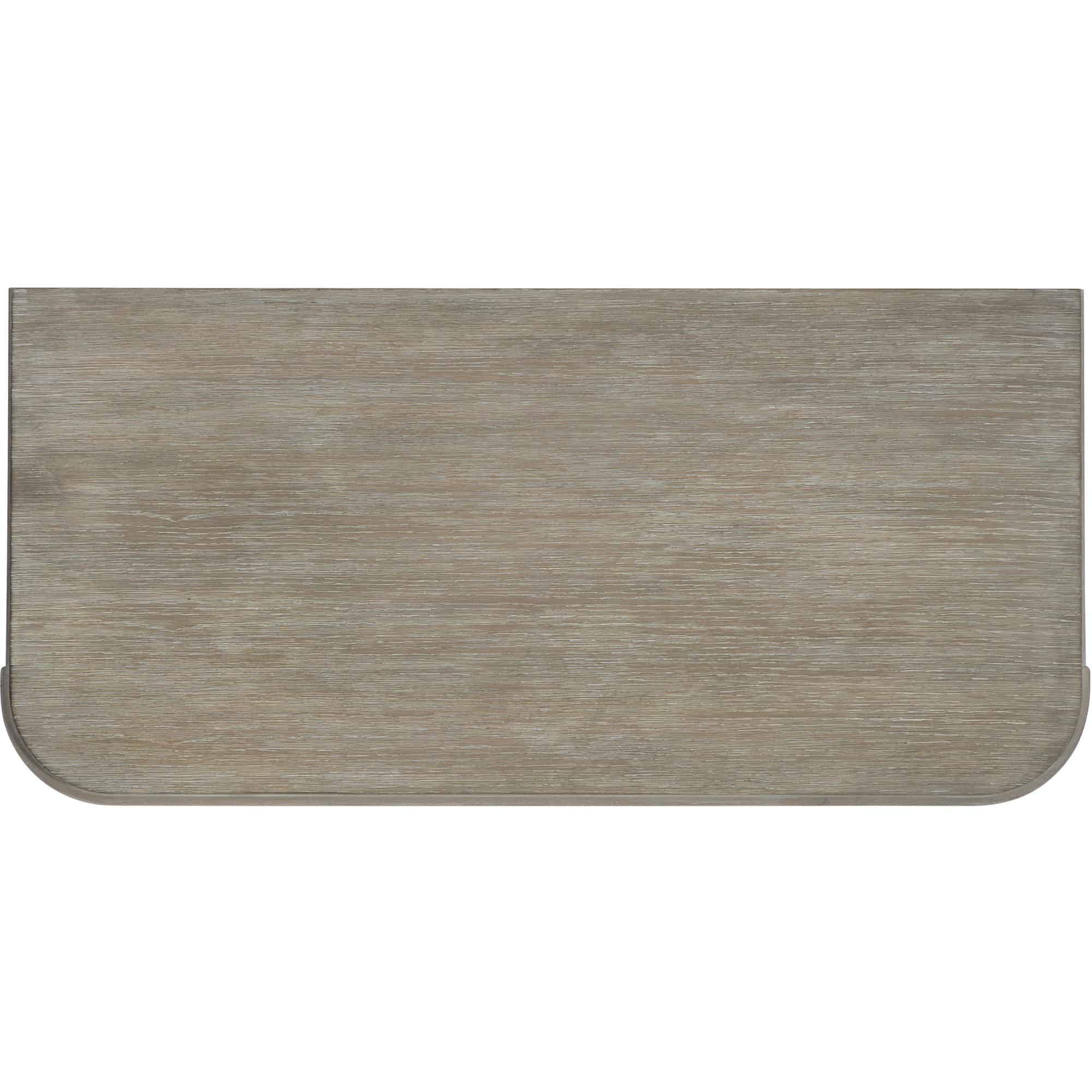 Finish: Greige sand-blasted finish on quartered oak veneers with cream and pewter bar pulls. Distressing includes wire brushing.