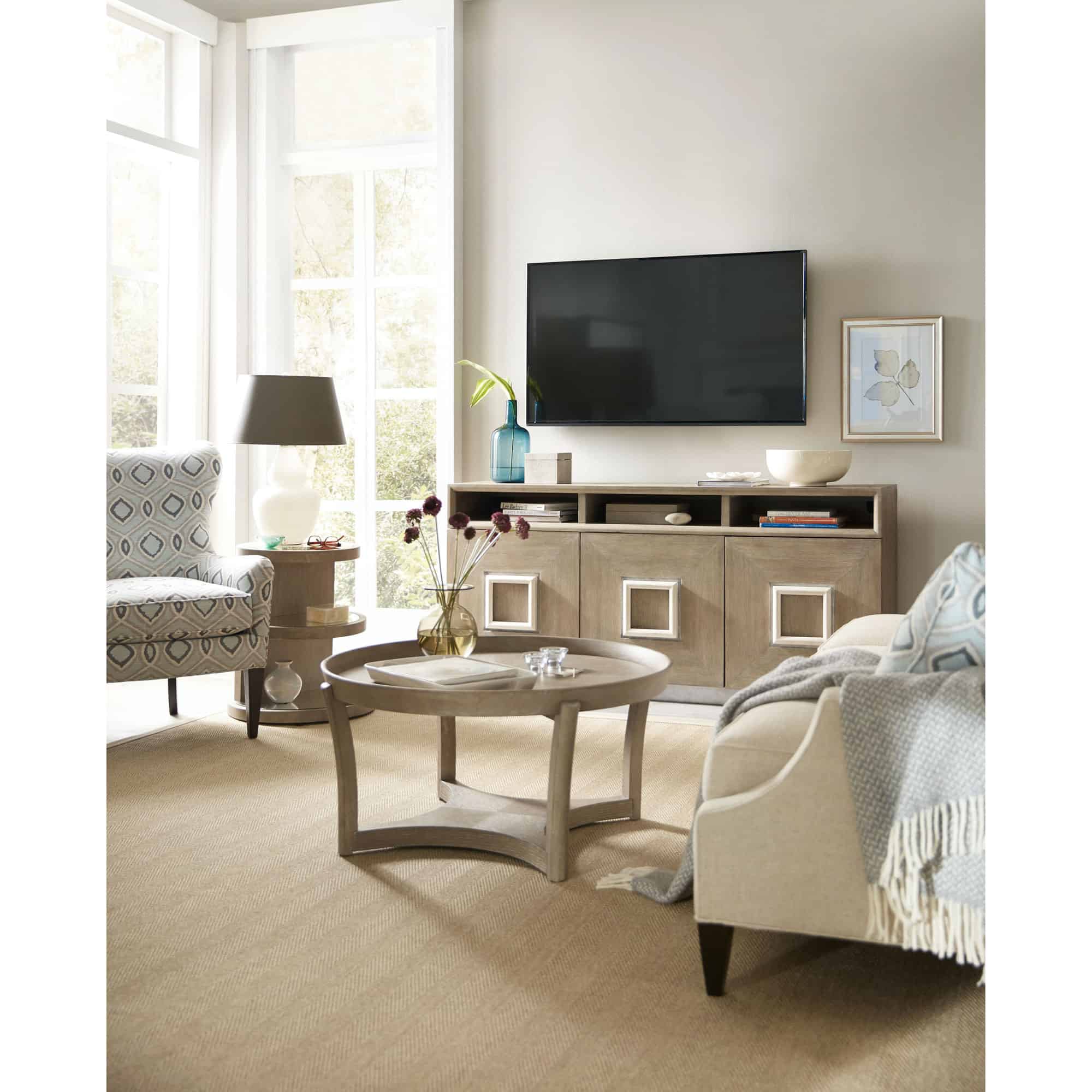 - Finish: Greige sand-blasted finish on quartered oak veneers