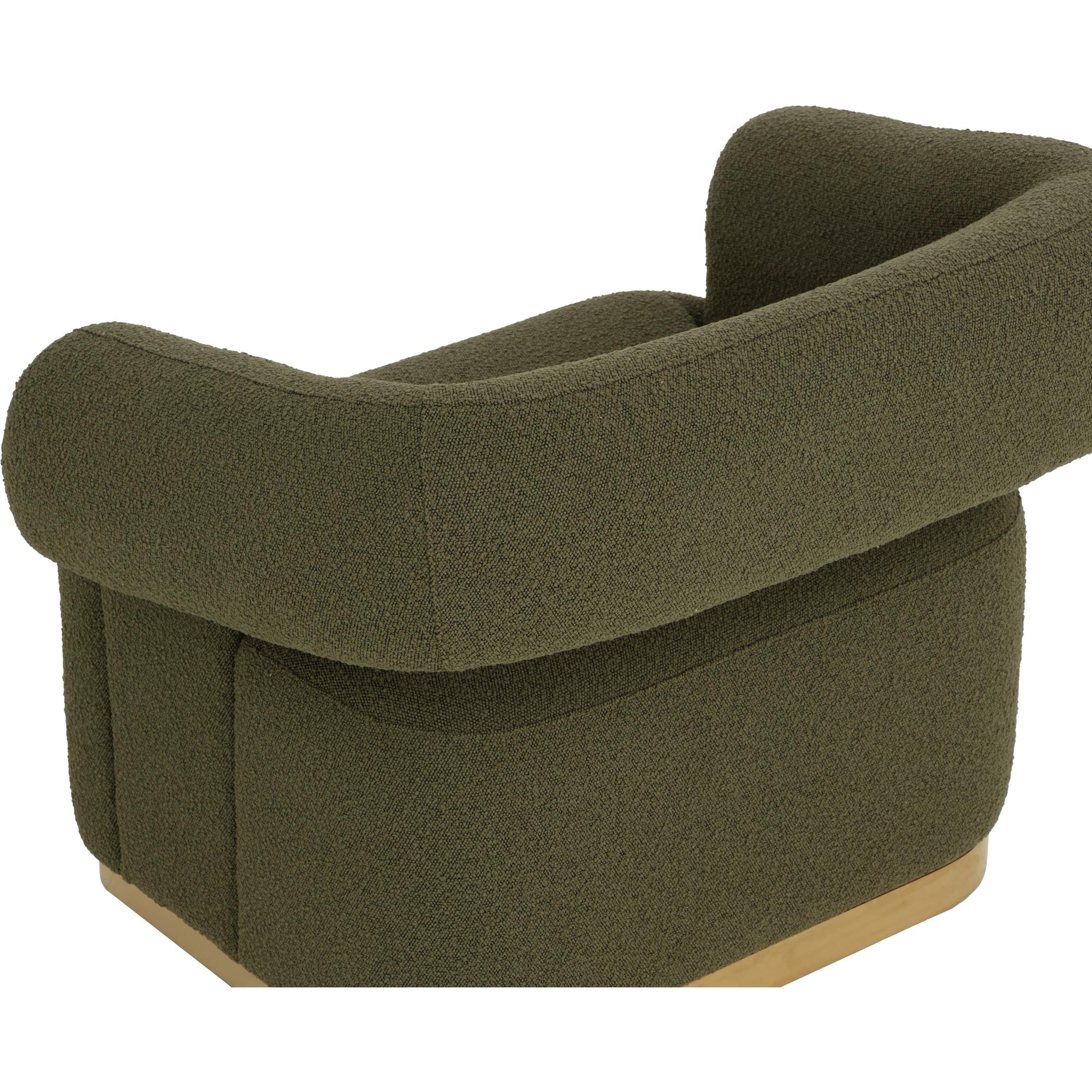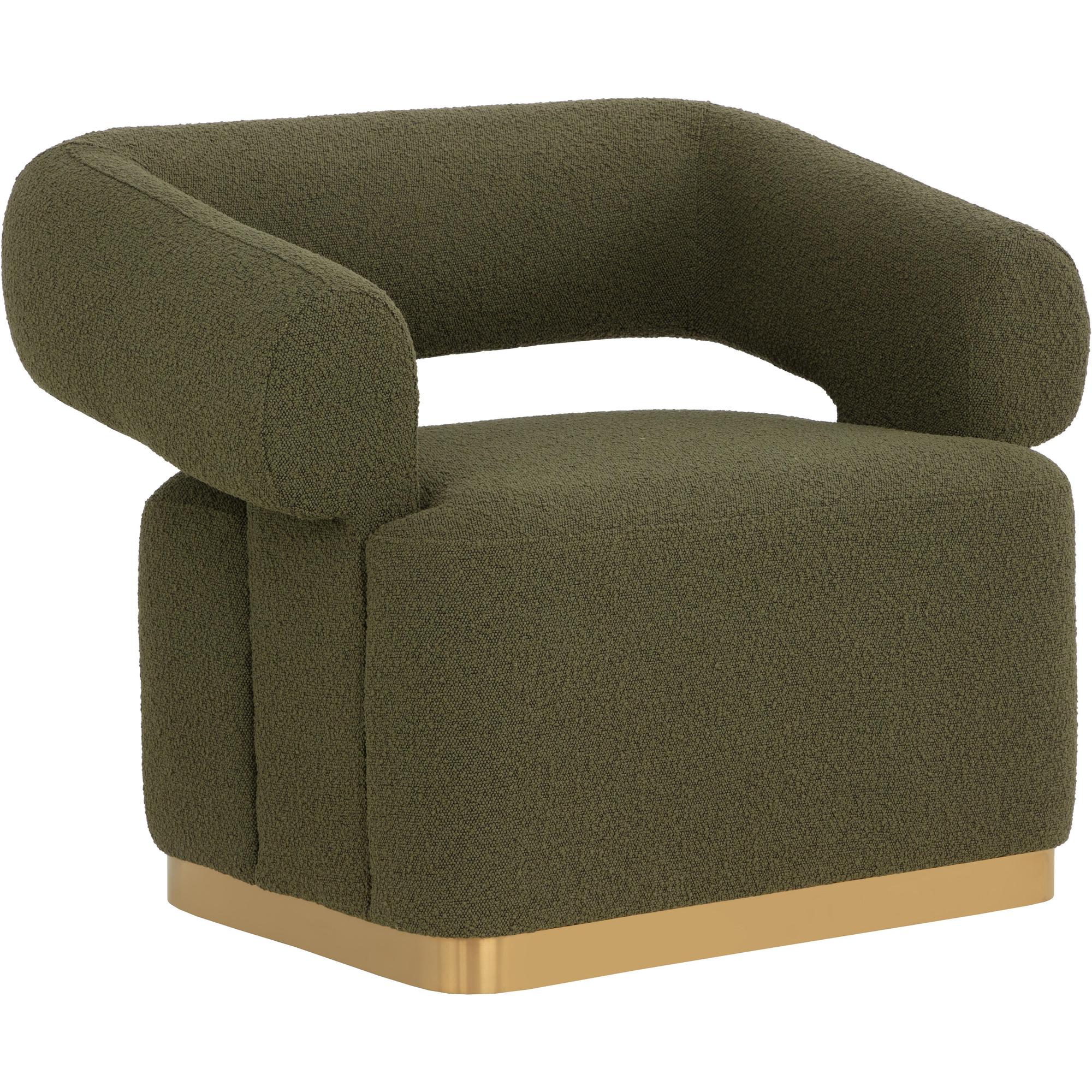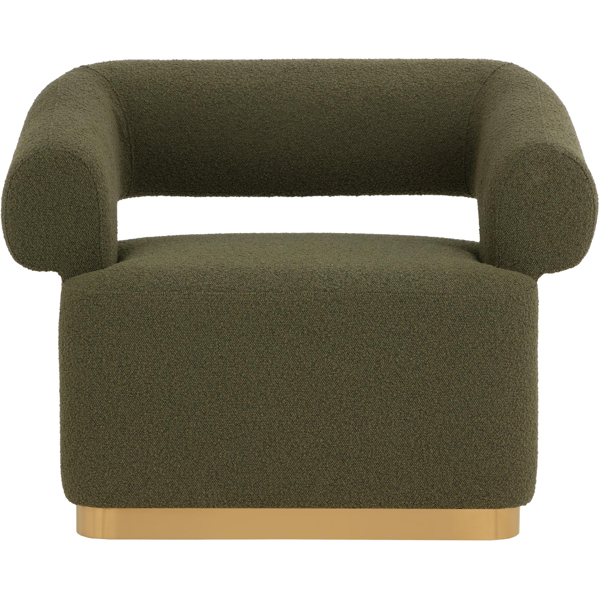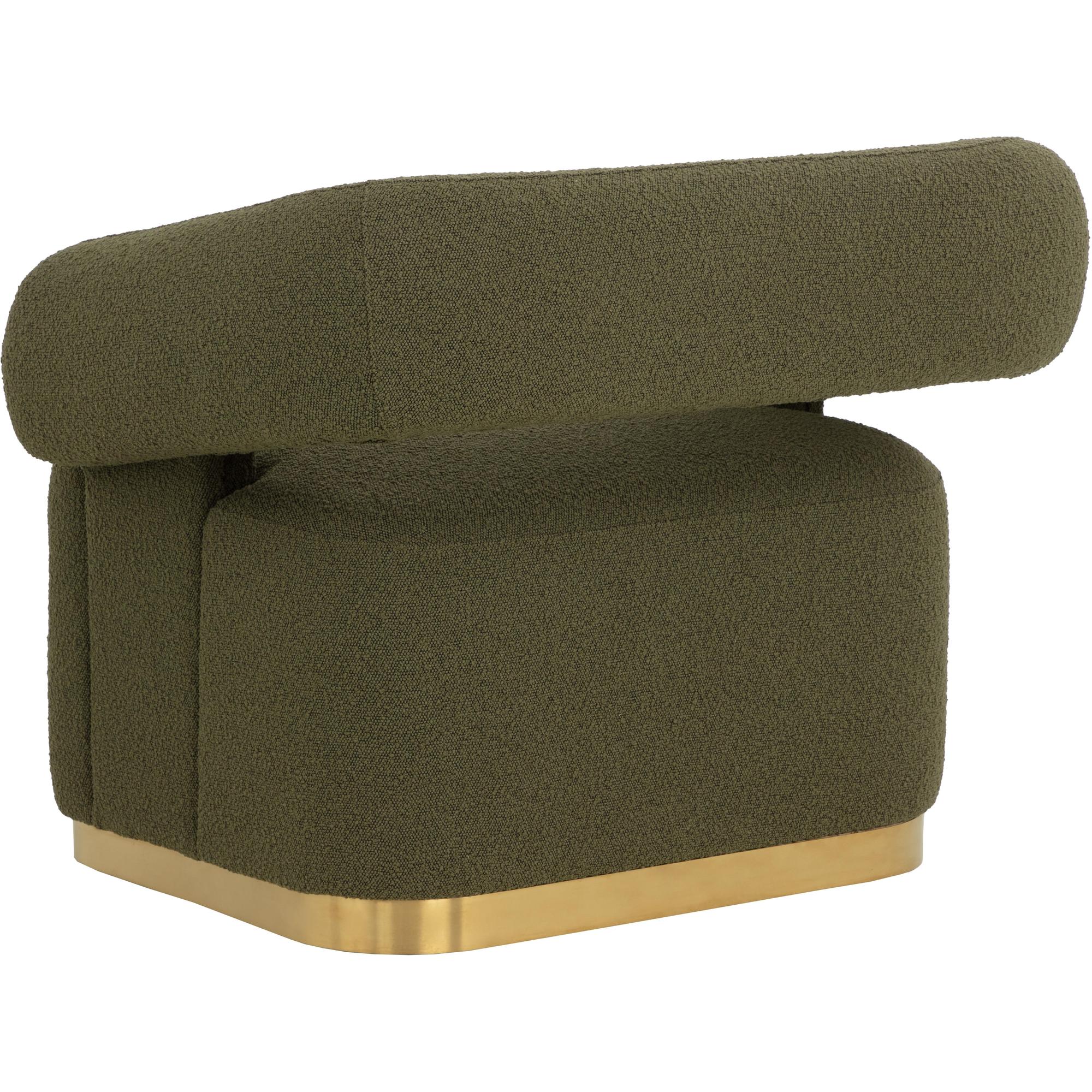 The Aggie Swivel Lounge chair is a statement-making mid-century accent chair with curves in all the right places. Upholstered in copenhagen olive fabric with a brushed gold stainless steel base, this lounge chair is a beautiful spectacle with its harmonious mix of textures.