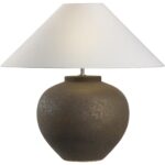 The Ahmya Table Lamp, part of the Shiga collection, is a timeless piece that blends ancient craftsmanship with modern design. Hand-turned in Japan, its body is finished with a unique black iron oxide mineral glaze, a technique deeply rooted in the traditions of the Shigaraki region’s ancient kilns. The glaze gives the lamp a textured, earthy appearance that adds character and depth to any space. Topped with a classic coolie shade, the Ahmya Lamp provides a warm, diffused light that creates a serene atmosphere.