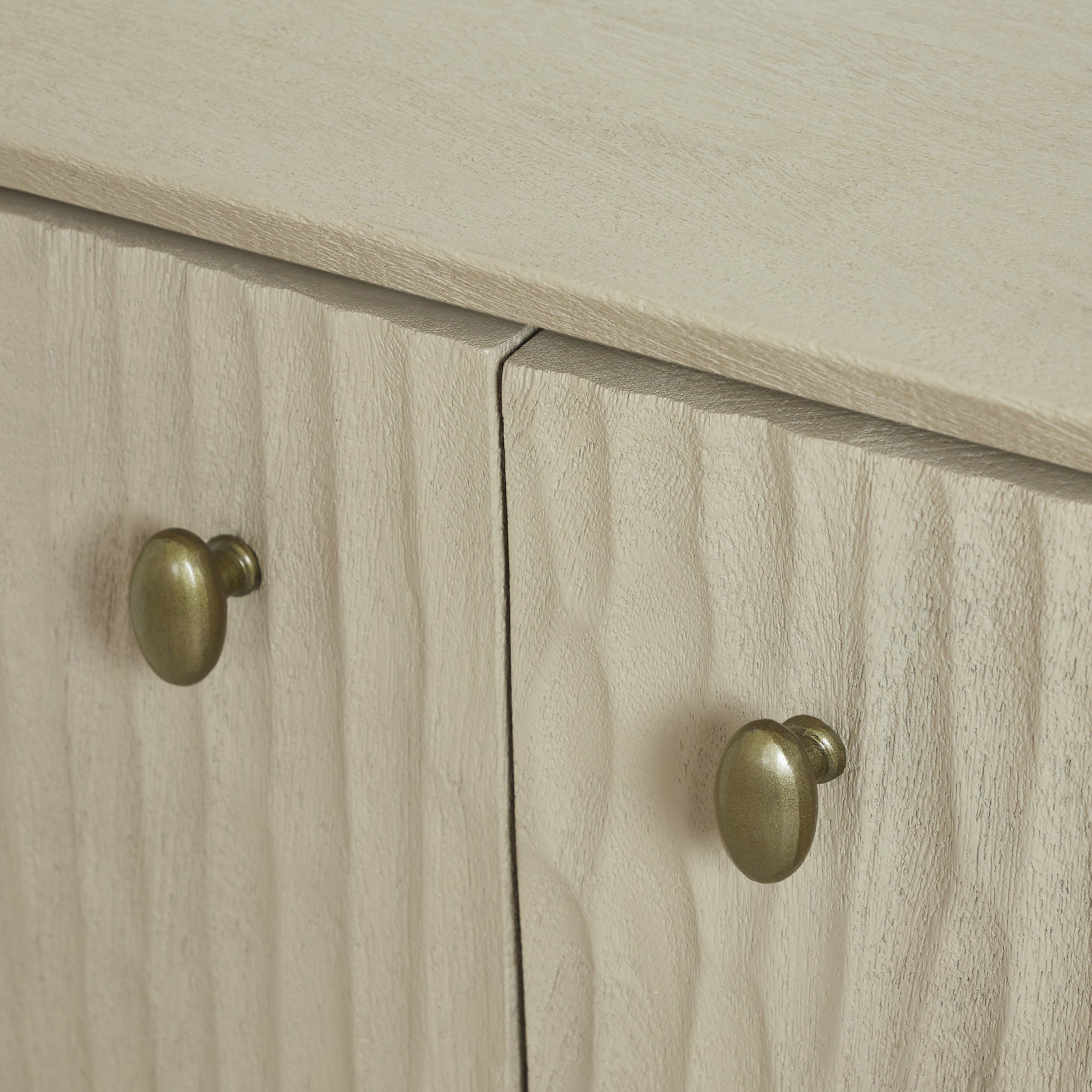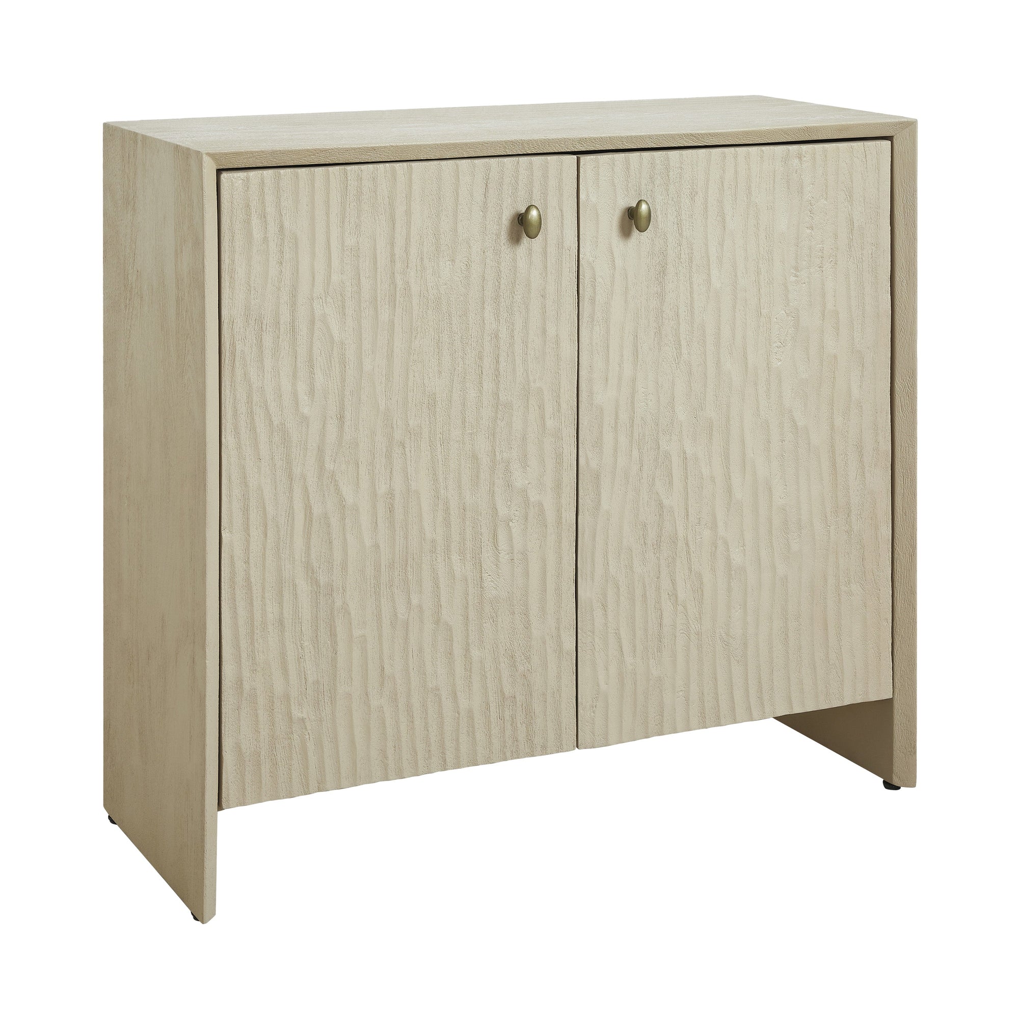 Add effortless function and style with the Aida 2-door cabinet. Its light brown mango wood body, sandblasted texture, and antique brass knobs create subtle elegance, while a clean transitional silhouette offers timeless appeal. Compact yet versatile, it’s perfect anywhere, from entryways to living rooms, blending practical storage with refined, understated charm.