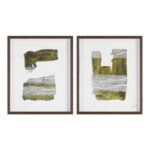 Give your design project an elevated edge with this set of collage style framed wall art. Cotton canvas and rice paper come together in perfect harmony, blending texture, shape and neutral tones for a modern impact. Each black oak-framed piece sits under glass to deliver a high-end look to any space.