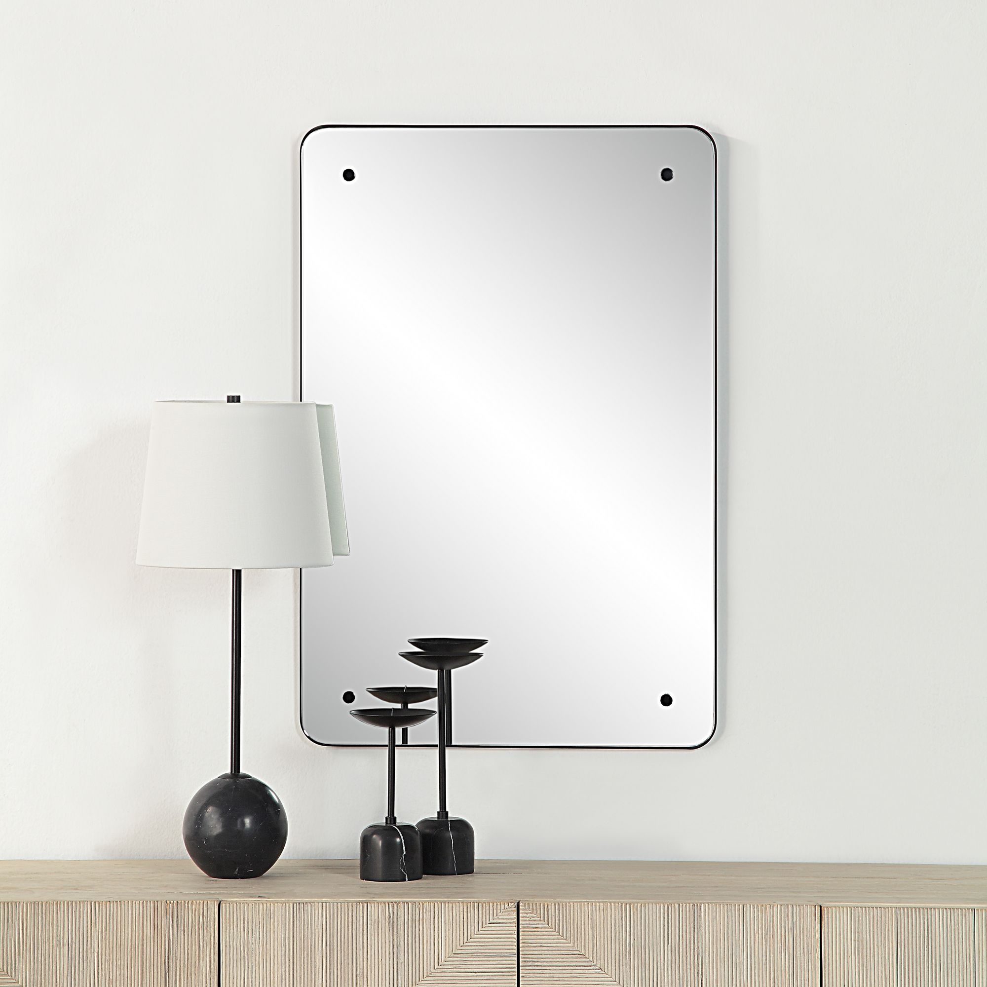 Elevate your space with the Aine 36″ Tall Rectangular Mirror in Matte Black. Expertly crafted with a high-quality and durable cast iron frame, this mirror boasts both style and substance. Its sleek and versatile rectangular shape is perfect for any contemporary or modern setting. Equipped with a D-ring hanging system, installation is effortless and four-way hanging options allow for versatile display. Its matte black finish adds a touch of sophistication and elegance to any room. Make a statement with the Aine 36″ Tall Rectangular Mirror, the perfect addition to any living space.