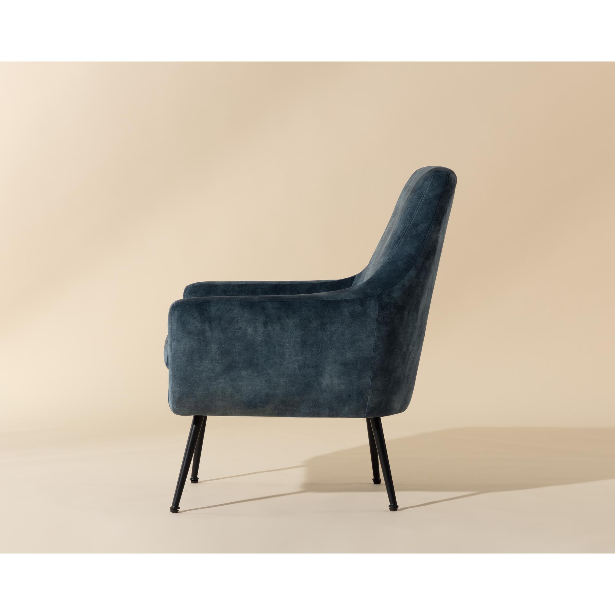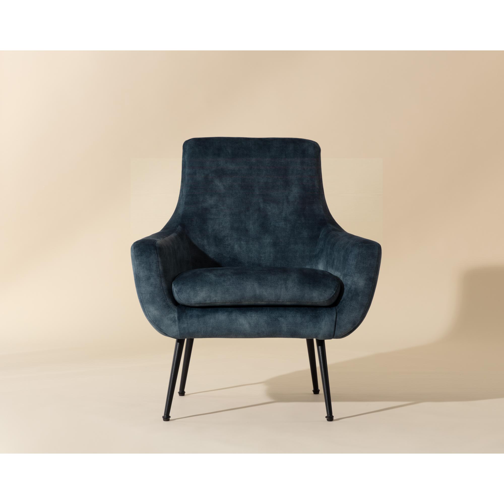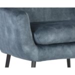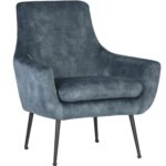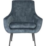 This glamorously designed armchair will draw attention through any lounge space. Features a modern seat in nono tapenade gold or petrol fabric. Black iron legs complete the look.