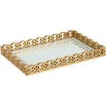 The Alexis Tray pays homage to the jewelry of the art deco era with its interlocking chain pattern resembling a beautiful bracelet. The tray bottom features glass with gold. Constructed of wood and glass and finished in satin gold, this tray is stylish and practical for entertaining or decorative use. Designed by Shayla Copas.