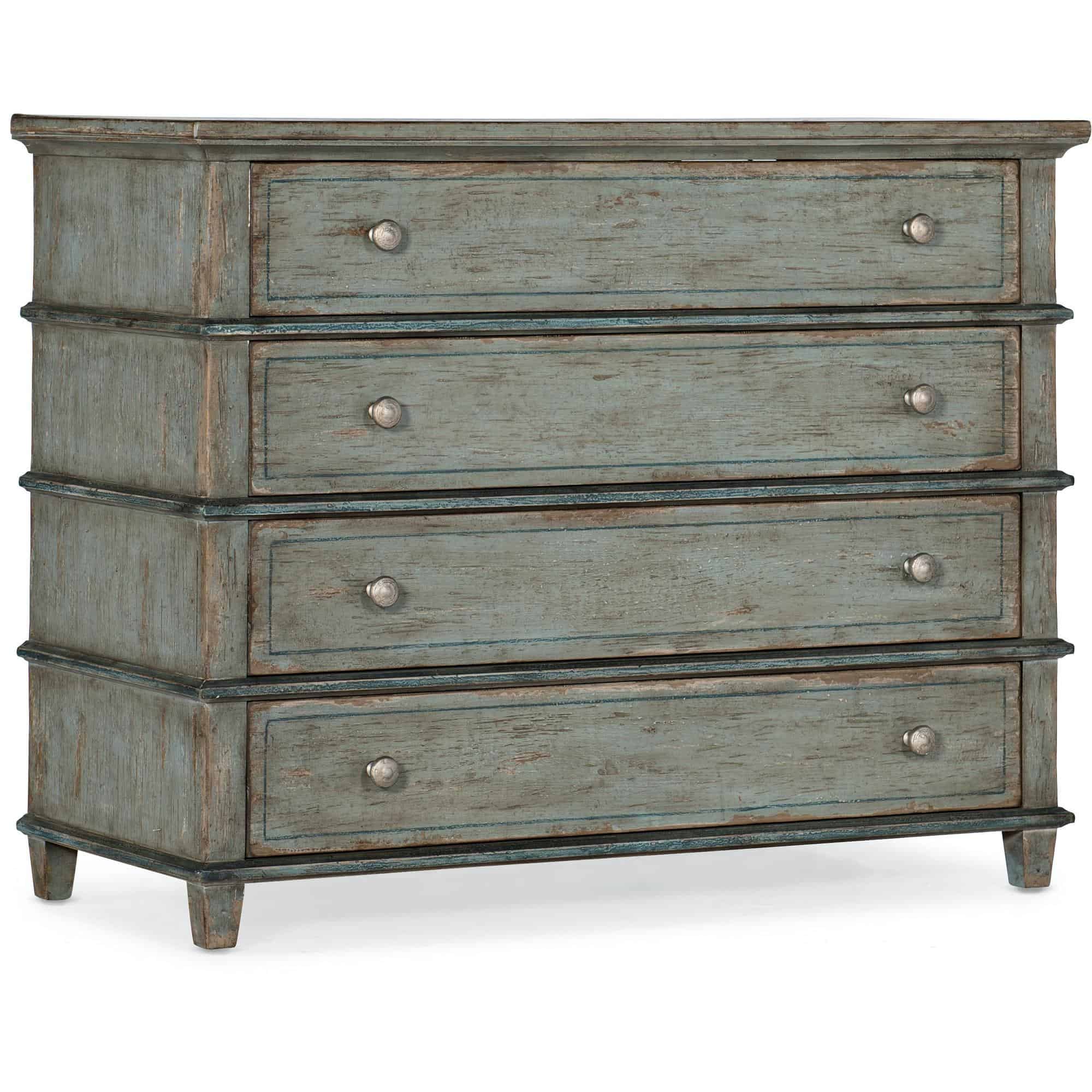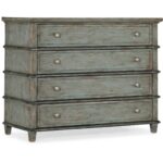Finish: Normandy (dark blue) finish. Knob hardware in hand hammered florentine gold color. Distressing includes handplaning, worm holes, rock, rasping edge and scraping.
