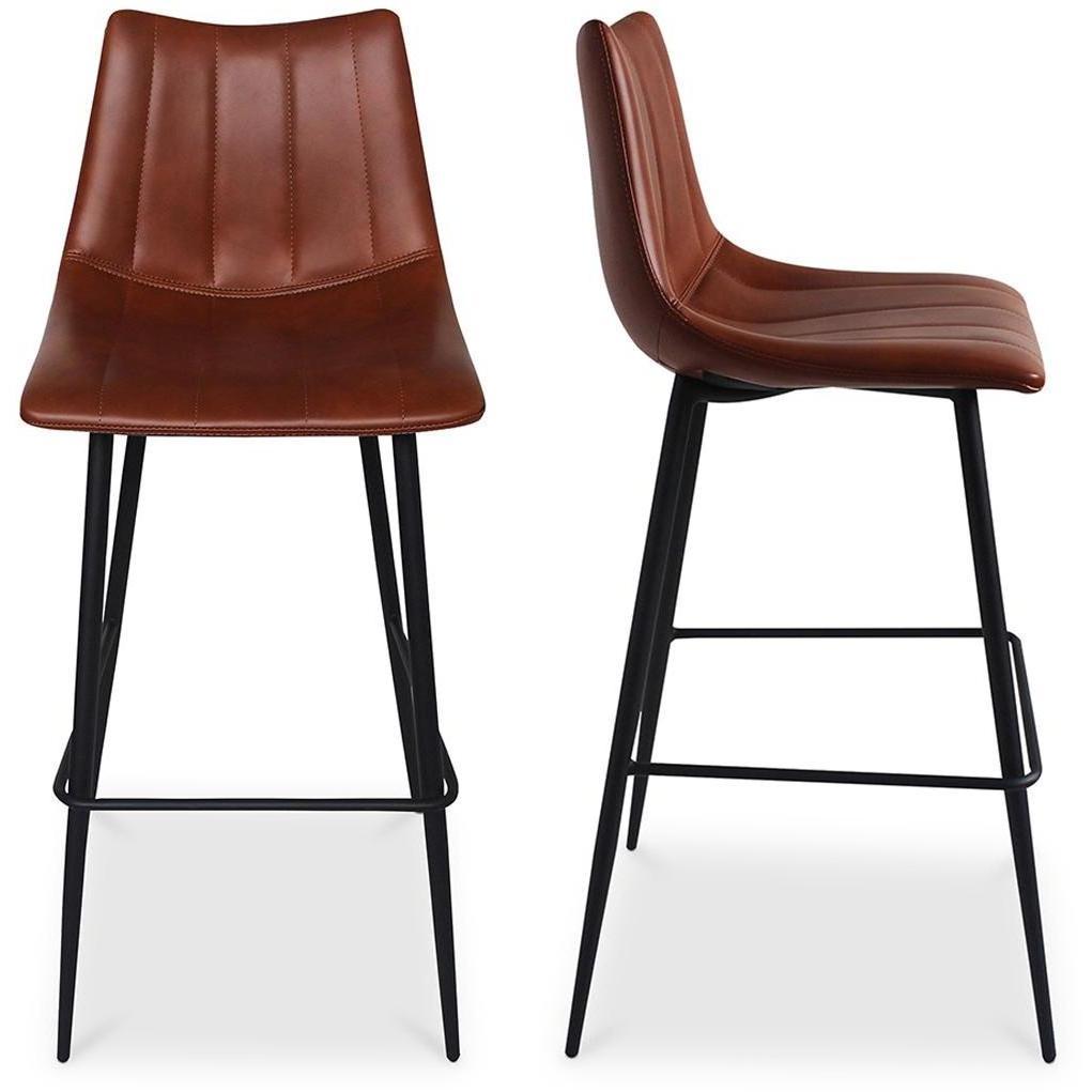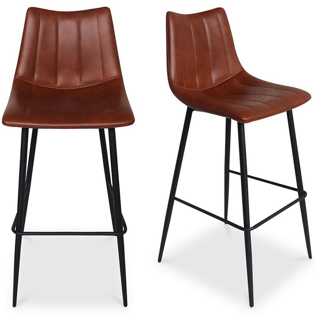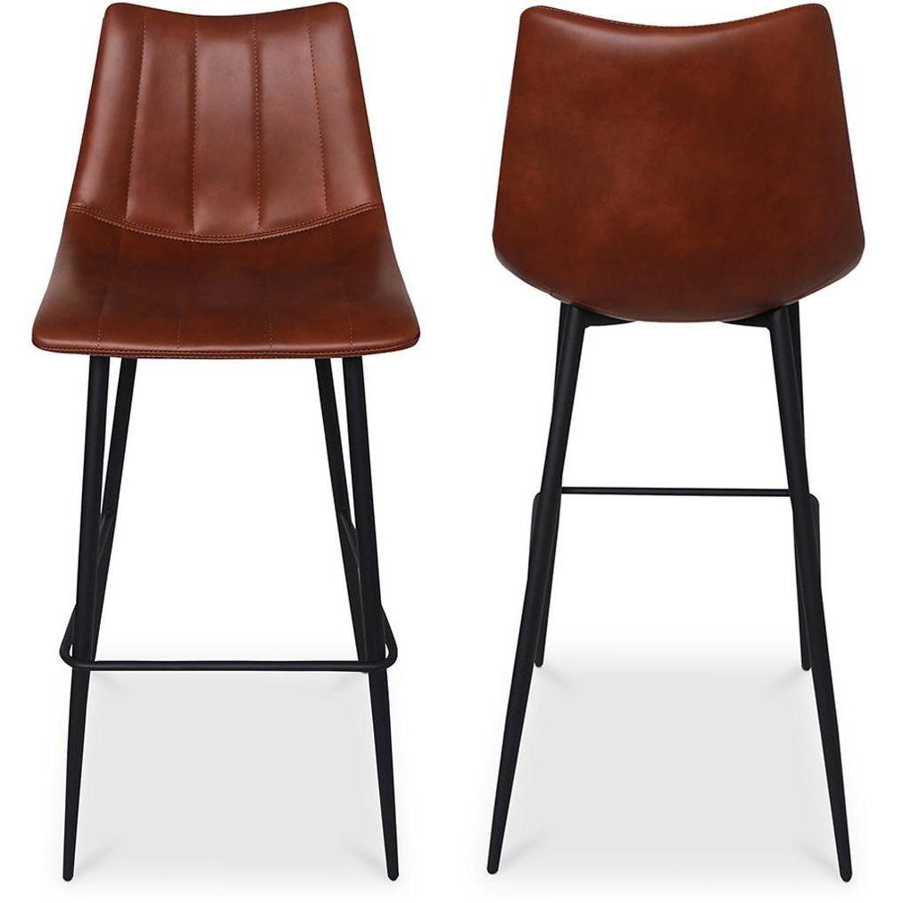 Contemporary modern barstools get a new take with this sleek aesthetic. The Alibi barstool features striking vertical line stitches that add subtle detail to its monochromatic design. A Soft faux leather seat is shaped to fit for comfort so guests can relax at the island or bar counter.