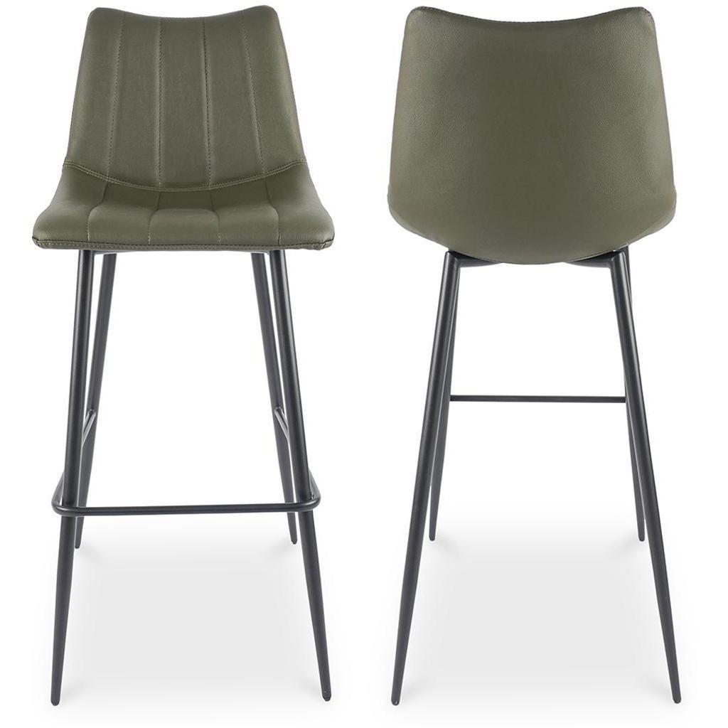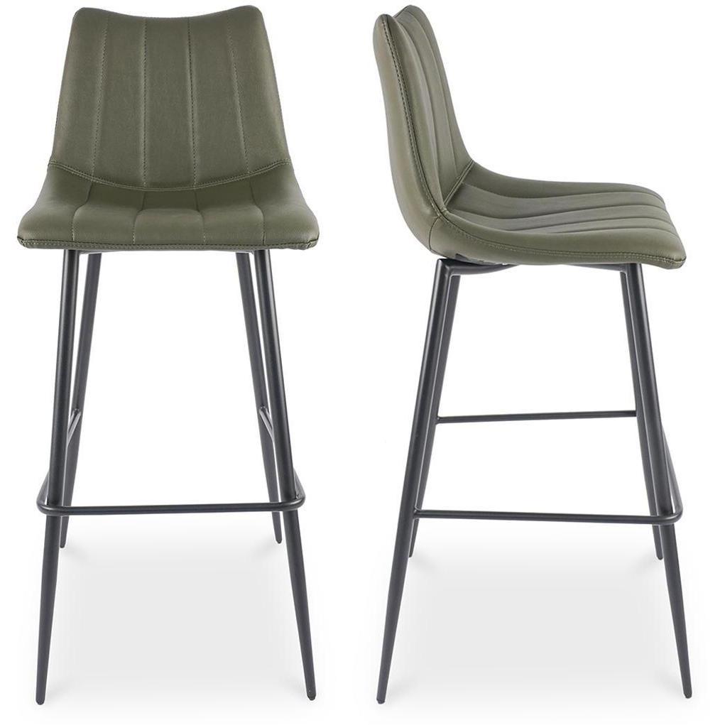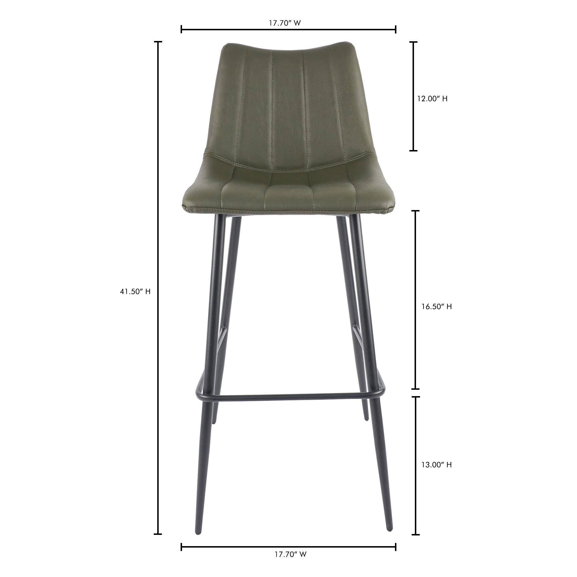 A contemporary bar stool that is as sleek as it is comfortable. The Alibi bar stool features striking vertical line stitches that add subtle detail to its monochromatic design. A soft vegan leather seat adds comfort and classic appeal.