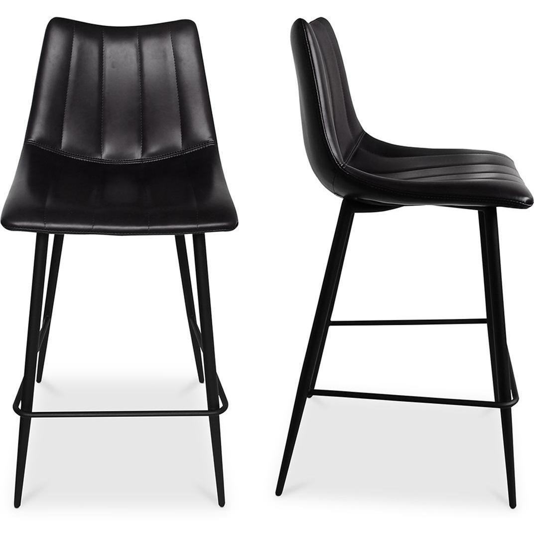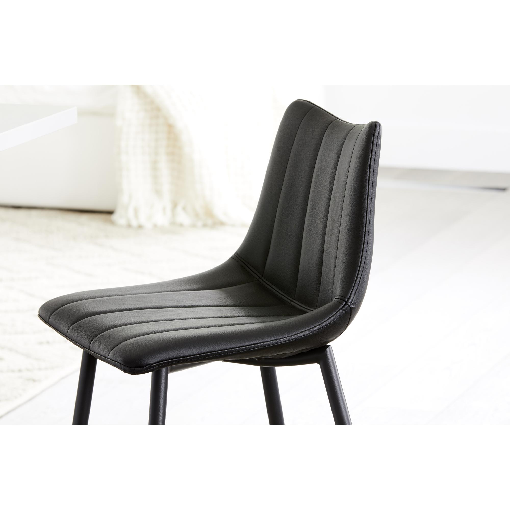 The Alibi counter stool emanates elegance and functionality, a design that works in multiple home settings, making it popular through a broad customer cross-section catering to different tastes and preferences. This sophisticated seating option boasts a sleek silhouette, accentuated by the subtle yet striking vertical line stitching adorning its monochromatic design. The plush faux leather seat is expertly contoured, providing an inviting and comfortable experience, at once both laid-back and refined.