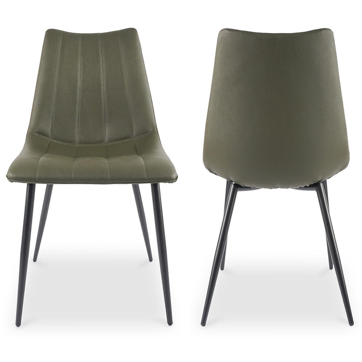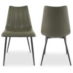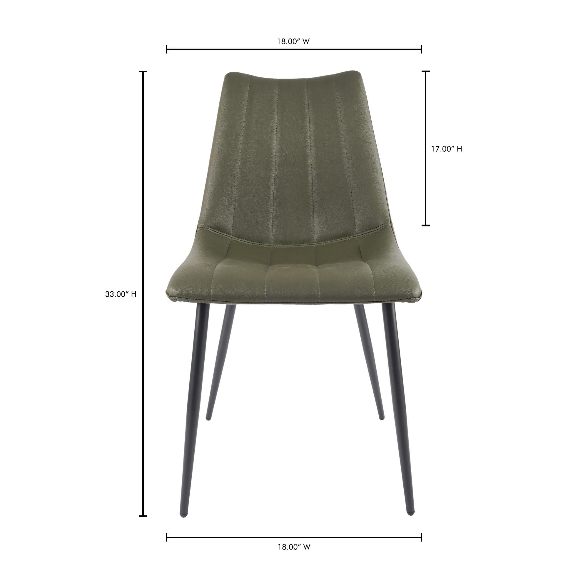 A new take on contemporary dining. The Alibi dining chair’s sleek modern aesthetic features striking vertical accent stitching, adding subtle detail to its simple and elegant design. An easy-to-clean, soft vegan leather seat is perfectly shaped for comfort, so guests and hosts alike can relax after the digestif is served.