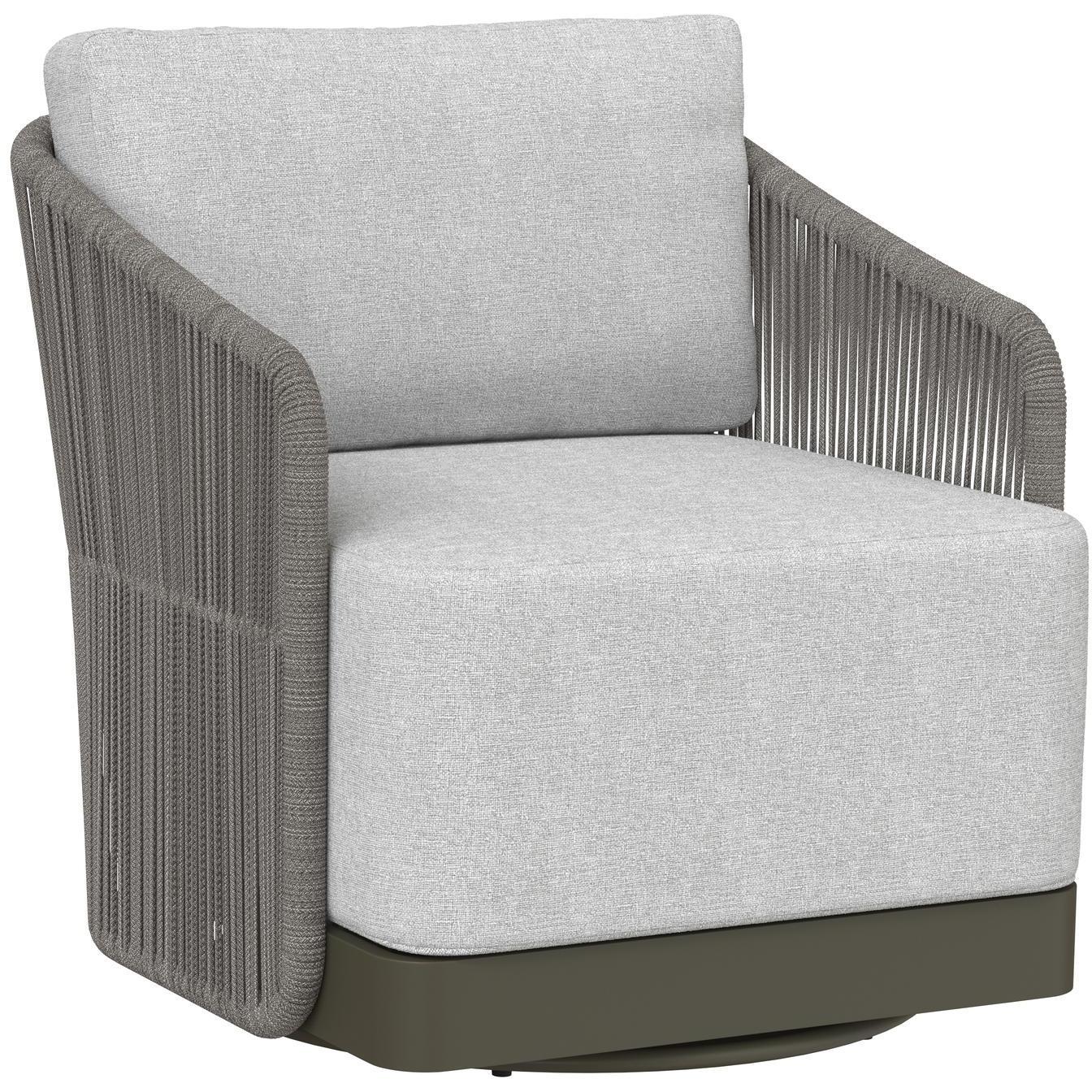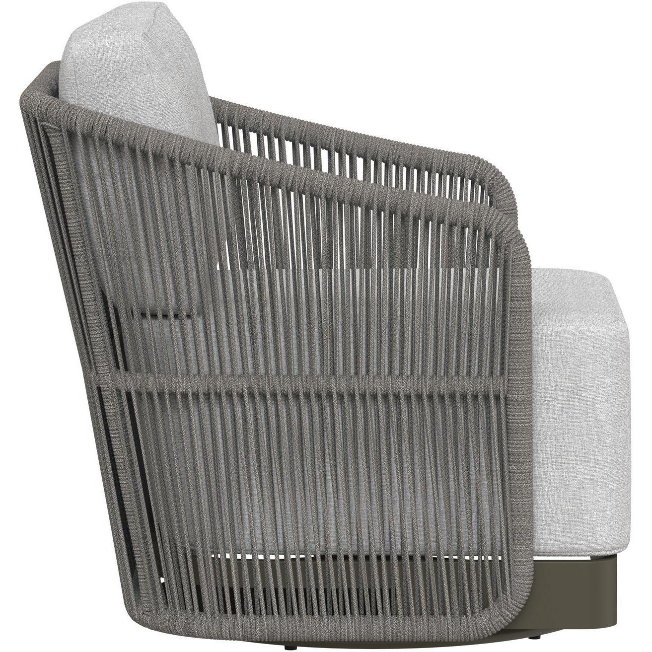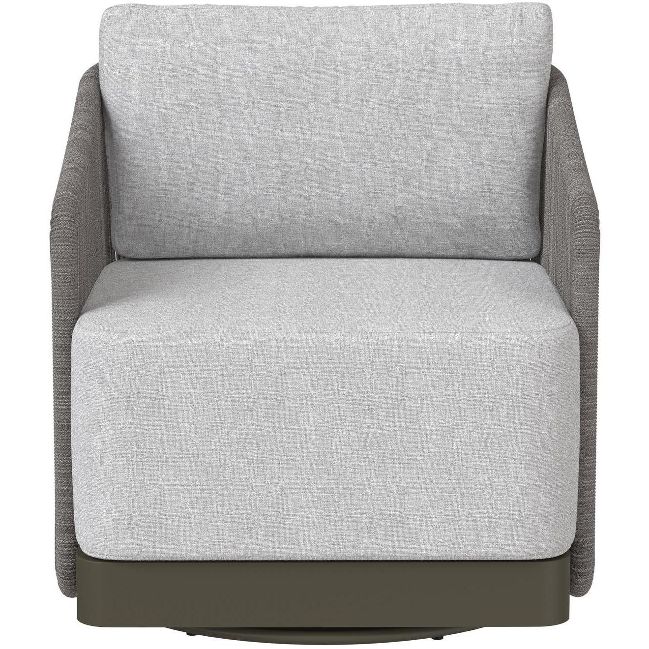 Introduce refined modern style outside with this impressive swivel armchair from the Outdoor by SUNPAN collection. Upholstered in gracebay light grey fabric with a powder-coated warm grey aluminum frame. Completed with grey rope weaving on the seat exterior.