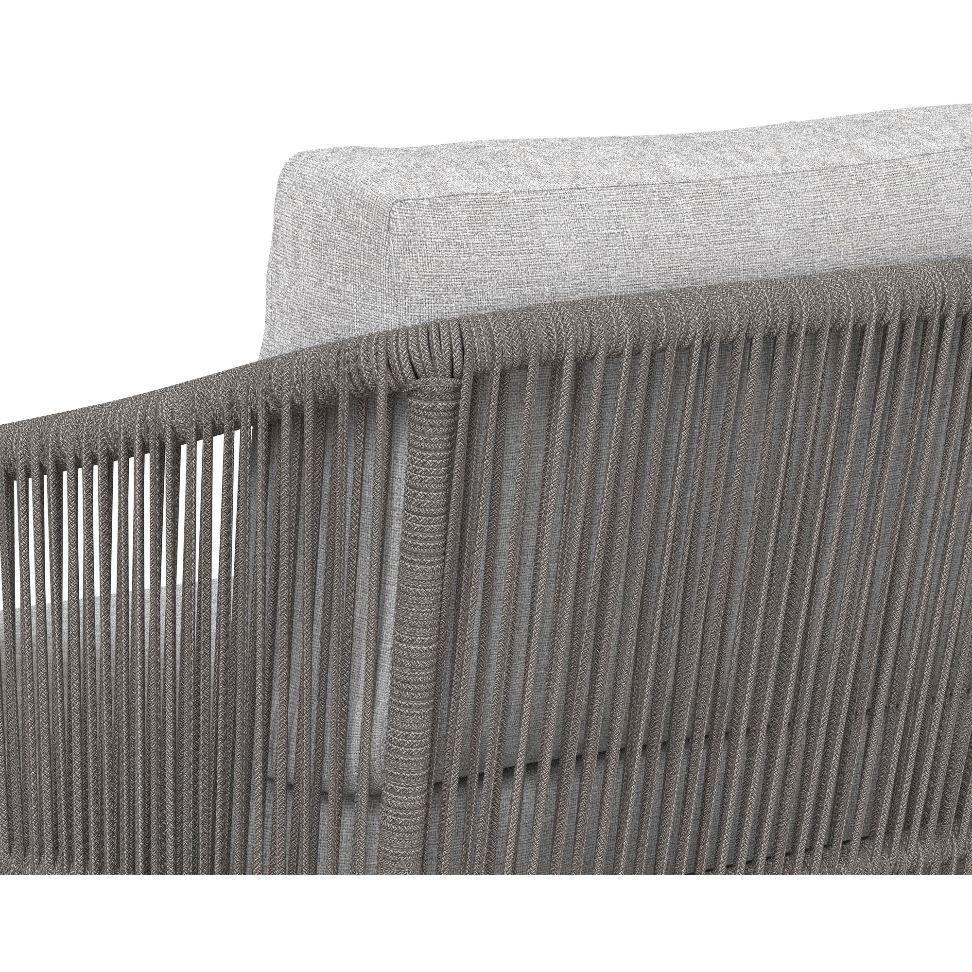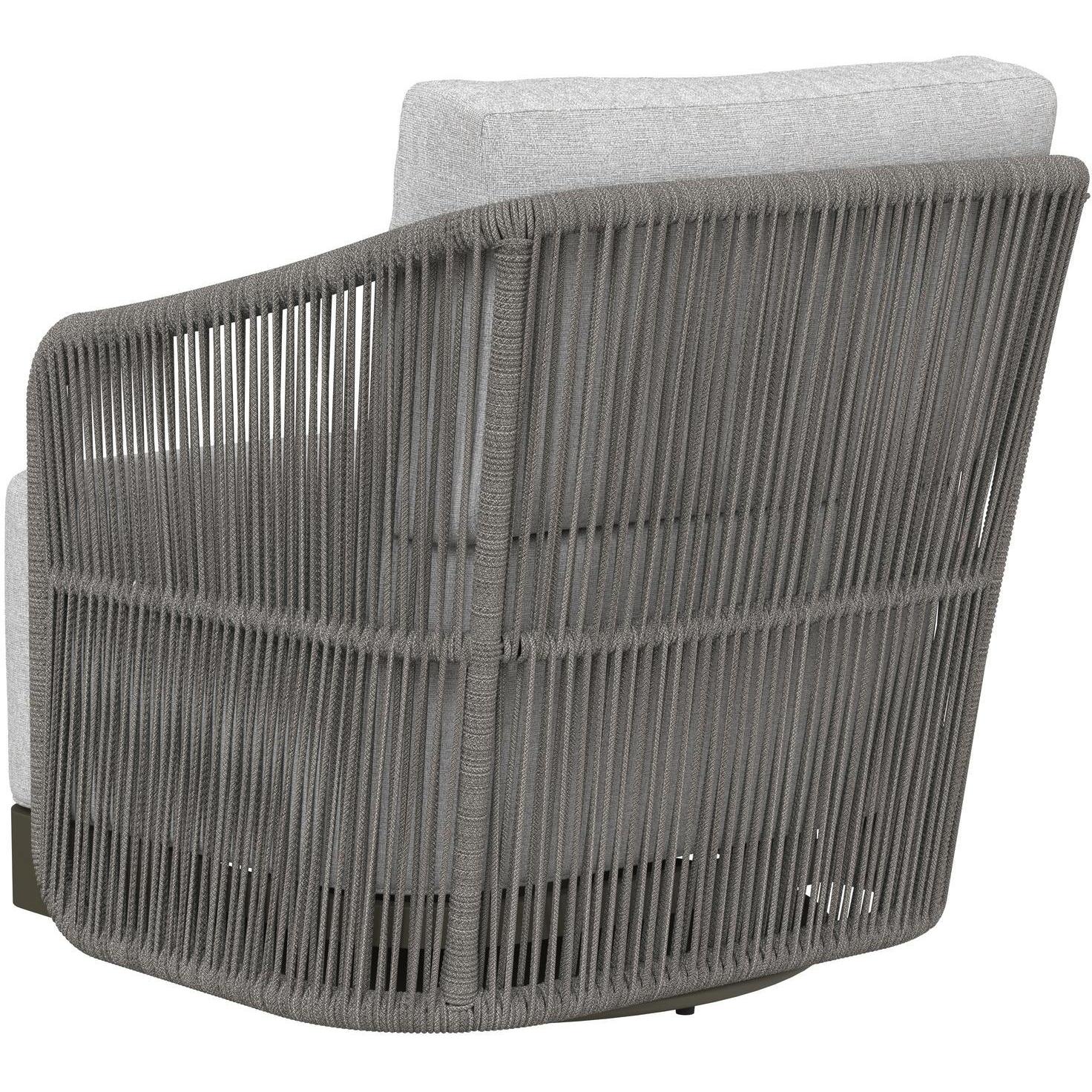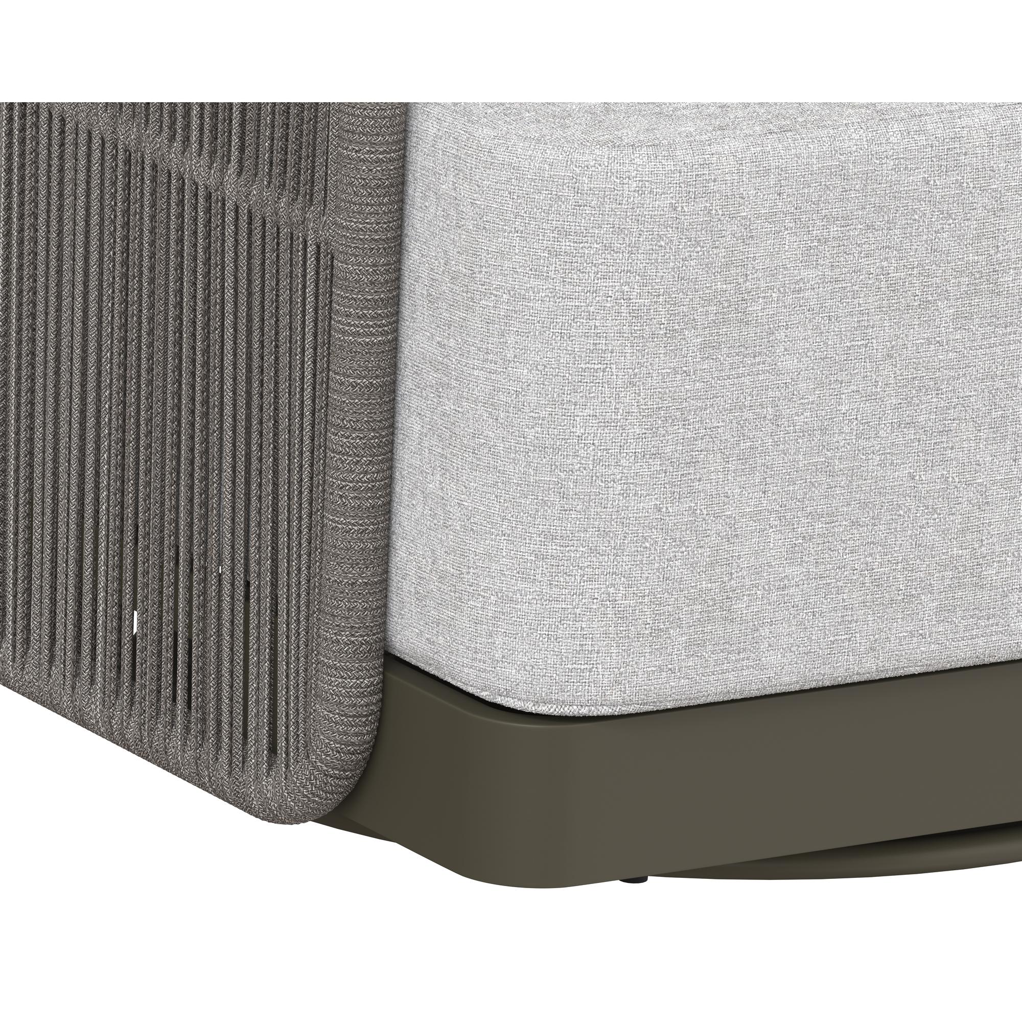Introduce refined modern style outside with this impressive swivel armchair from the Outdoor by SUNPAN collection. Upholstered in gracebay light grey fabric with a powder-coated warm grey aluminum frame. Completed with grey rope weaving on the seat exterior.