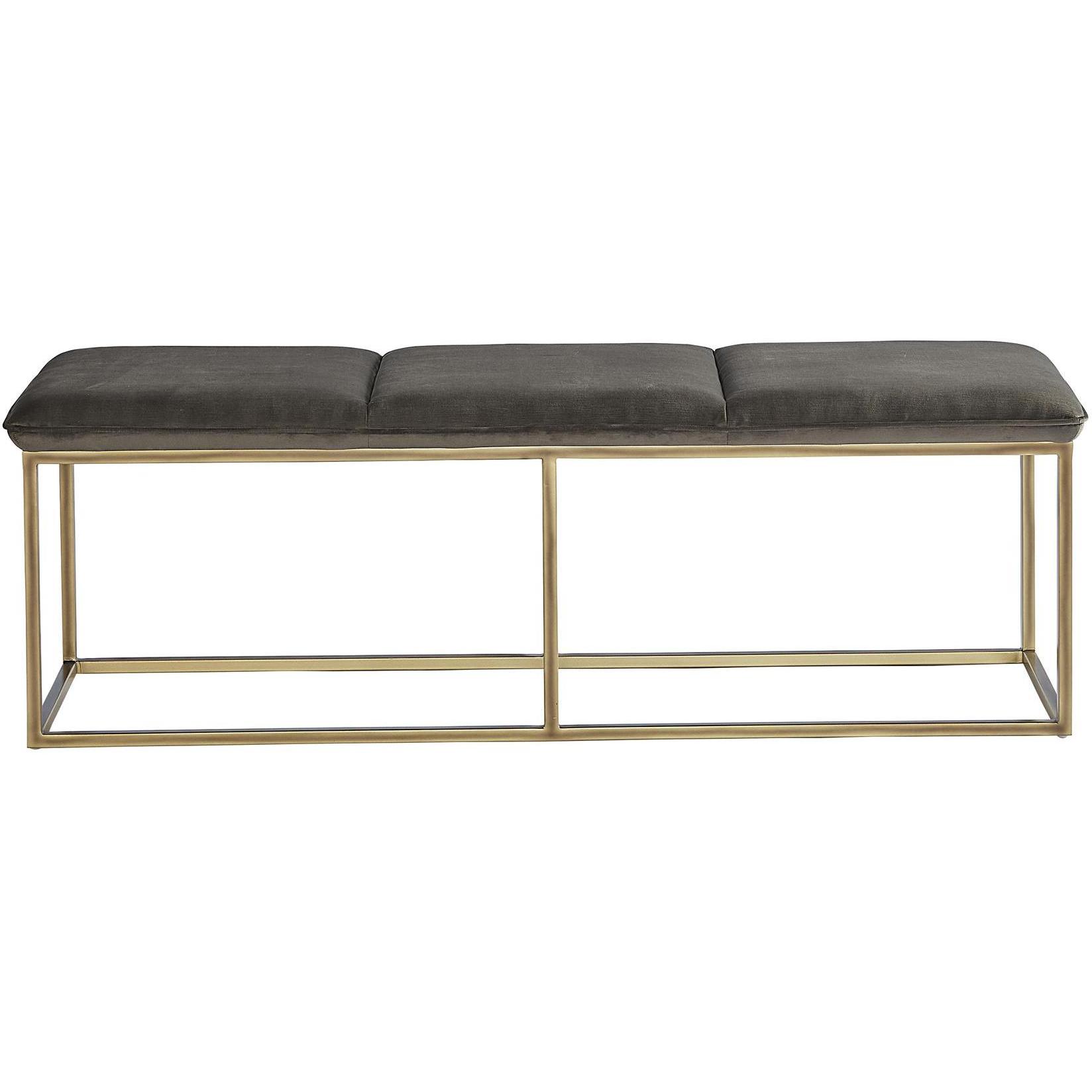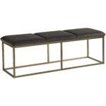 This bench combines transitional style with luxurious elements. Features an exposed rustic bronze steel frame and a piccolo pebble performance fabric seat. Performance fabric is moisture repellent, durable and easy to clean.