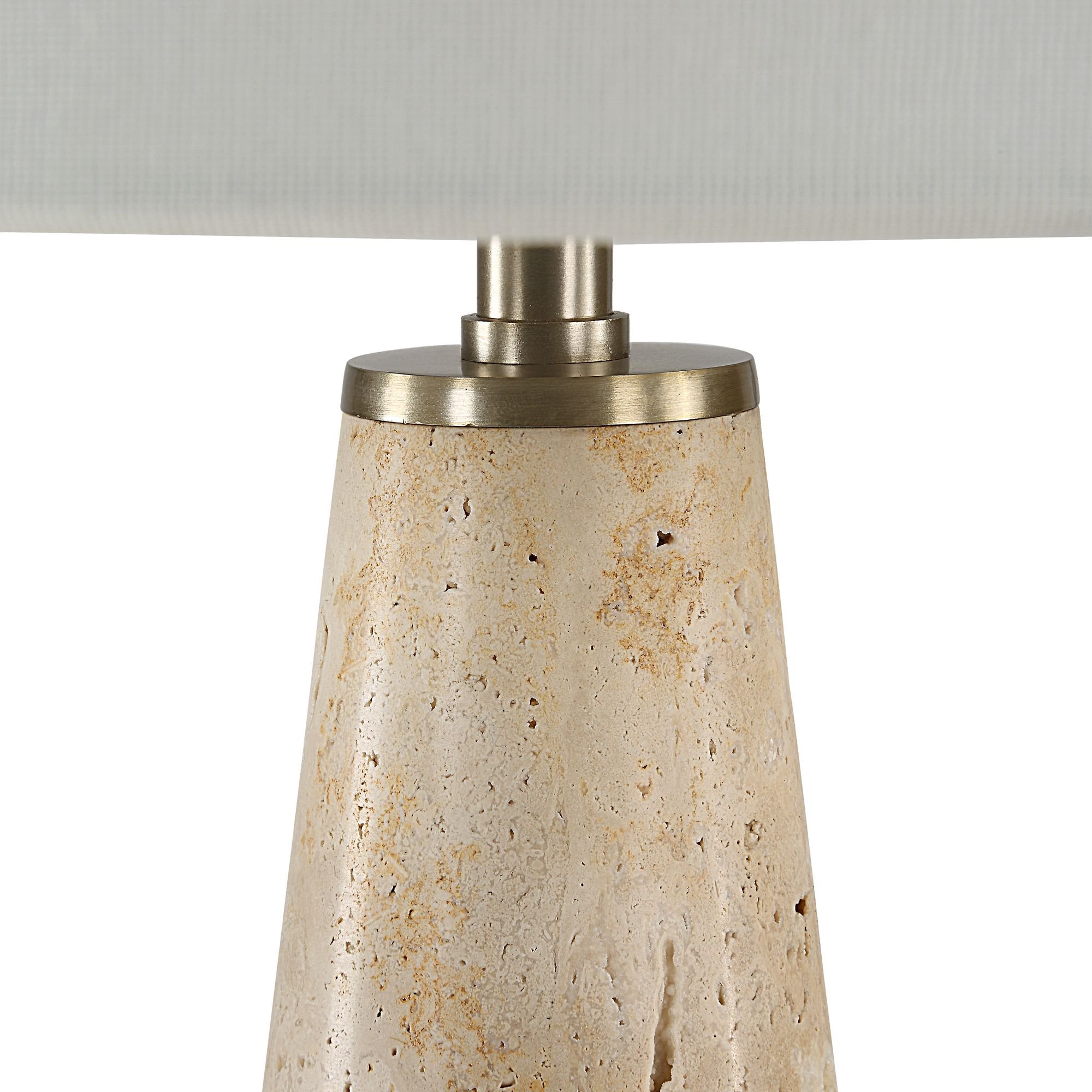 Putting the unique swirls and patterns of travertine in the spotlight, this stone and linen table lamp will add a touch of natural elegance to any space. Perfect for lighting up any contemporary or transitional interior, its clean lines and creamy hues deliver simplicity and style. Place one next to a favorite reading spot or on a console table for instant ambiance.