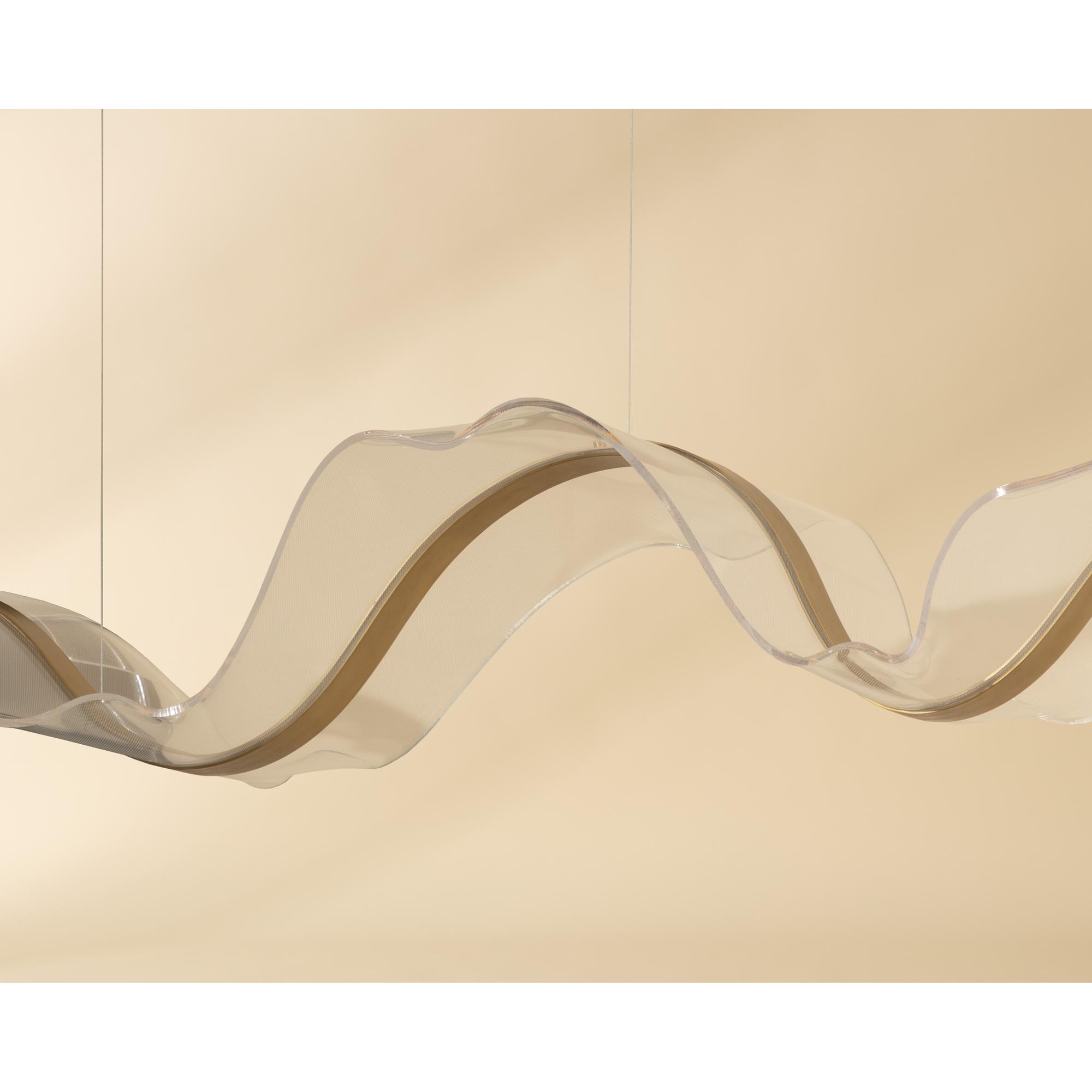 The Alun Chandelier is inspired by the rhythmic waves from your favourite beach. Its fluid form, crafted from speckled acrylic and brushed gold steel accents goes well in open spaces to impart a weightless feel for a minimal aesthetic.