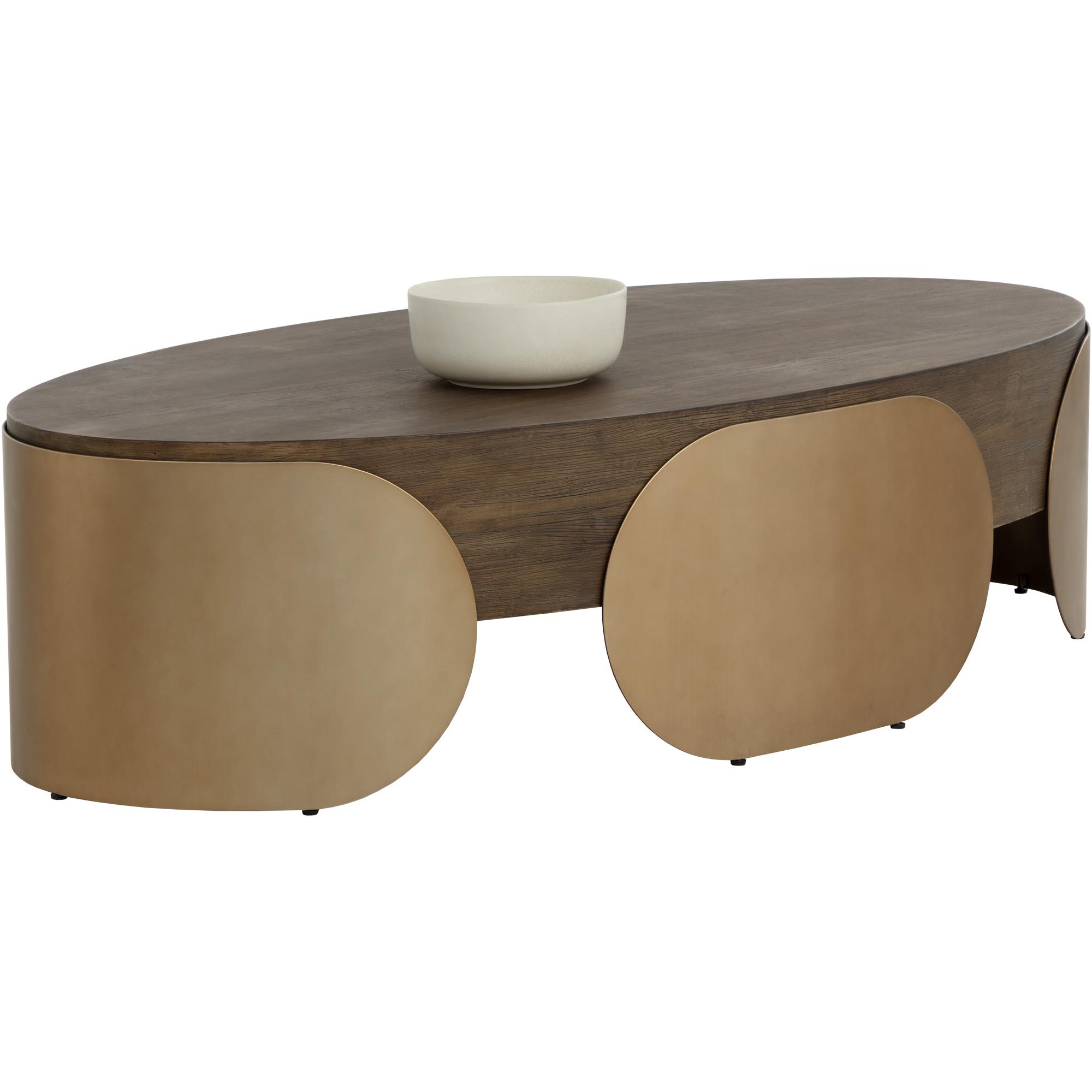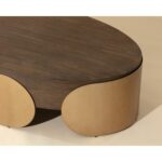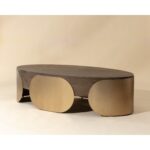 An angular masterpiece, the Amarula Coffee Table is a breathtaking construction, ripe with curves and fluidity. Crafted with a timber effect on a concrete top and draped with powder-coated brushed brass legs, this coffee table is a modern take on a bold mix of materials.