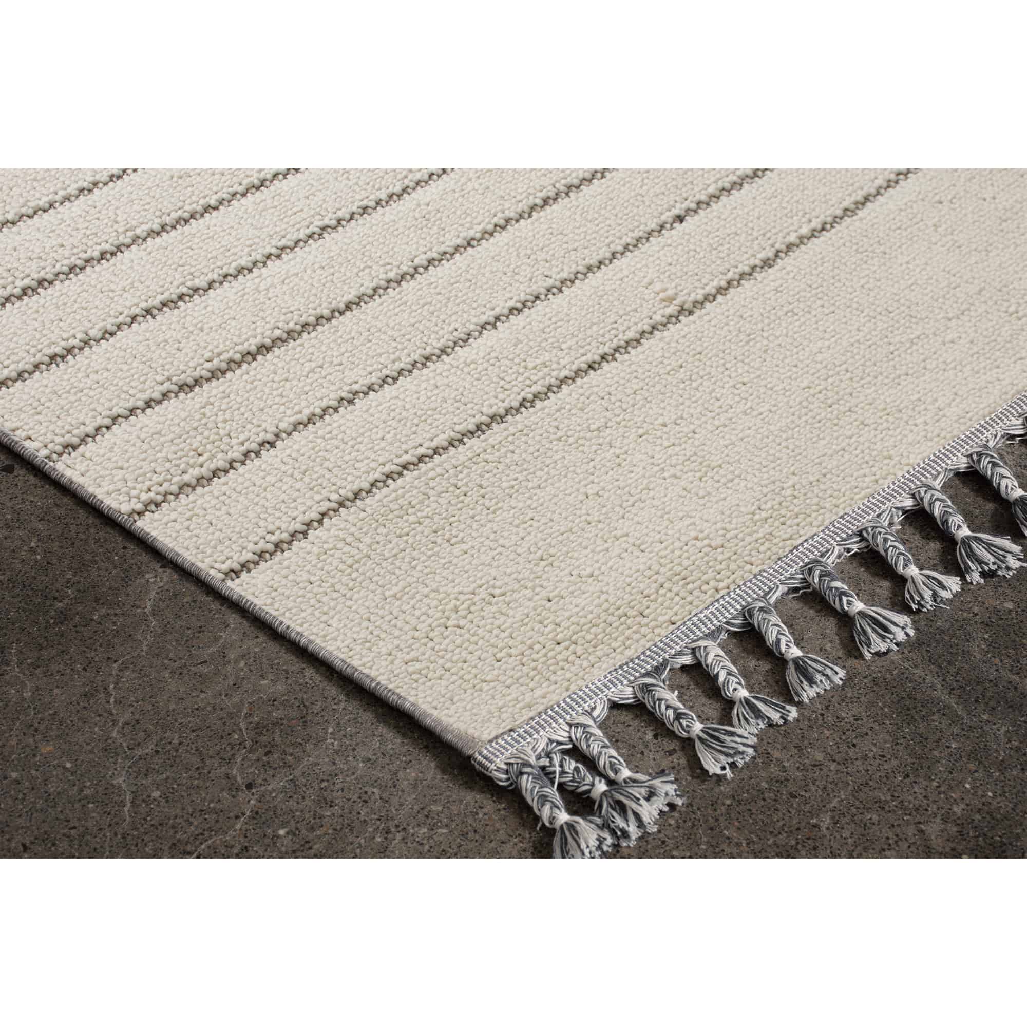 Nautical flair takes on a muted appeal within this rug design. The selection of sizes means this design can be at home in the grand beach house or cozy condo. The soft ivory base acts as the optimal backdrop for dark captivating stripes to make their grand impression.