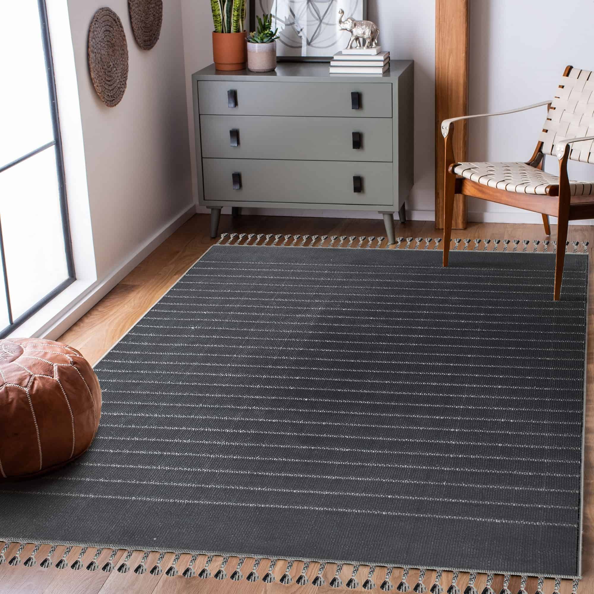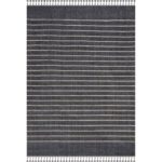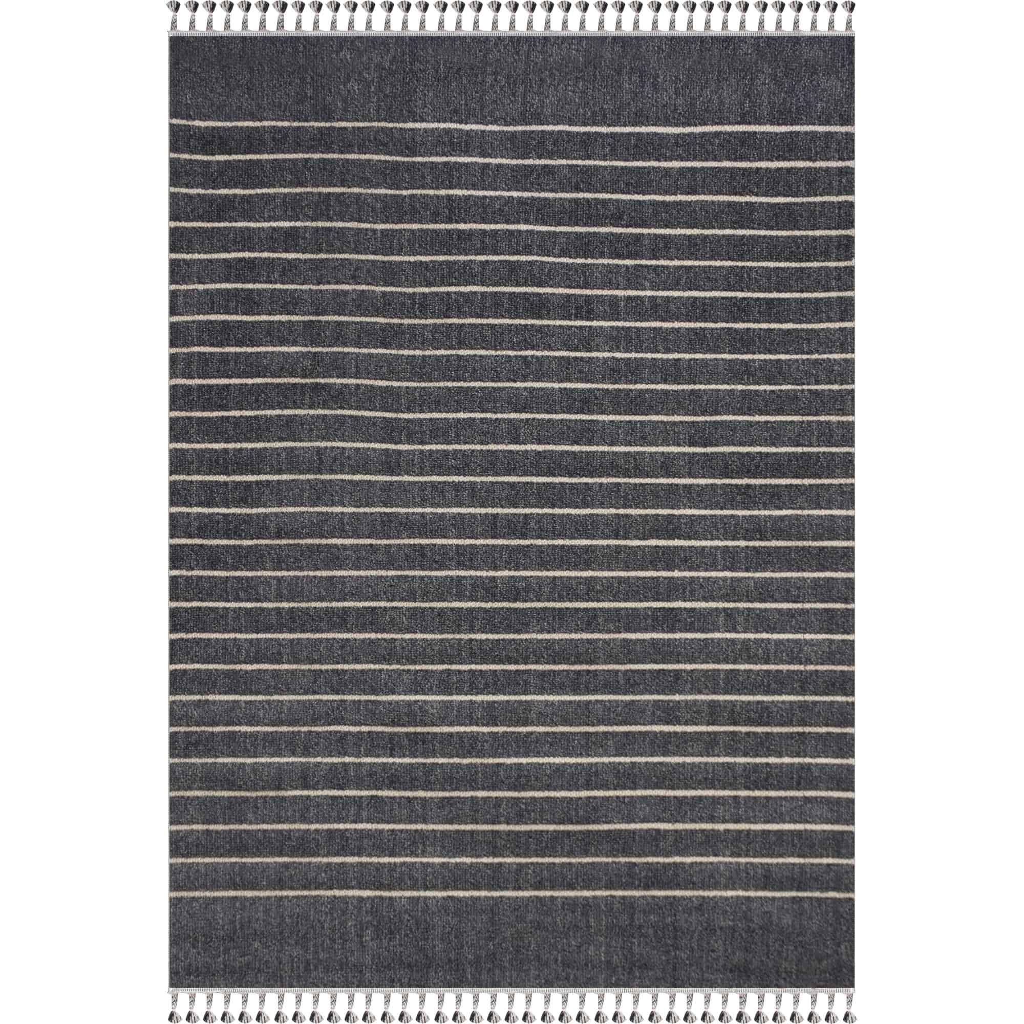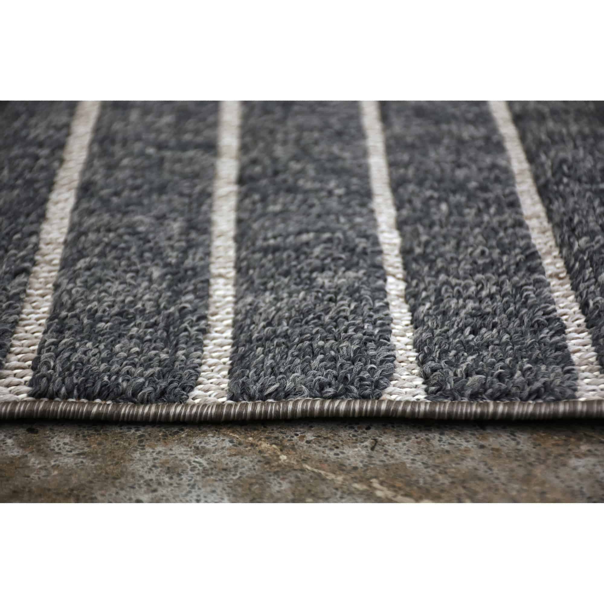 Nautical flair takes on a muted appeal within this rug design. The selection of sizes means this design can be at home in the grand beach house or cozy condo. The soft grey base acts as the optimal backdrop for dark captivating stripes to make their grand impression.
