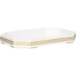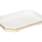 The Ambrose Tray has an exquisite design and luxurious accents make a statement in your space, reflecting your impeccable taste and discerning style. Its sleek rectangular shape is enhanced by the white finish, intricate silver Art Deco detailing and silver feet, which adds a touch of glamour and opulence to the design. Designed by Elizabeth Wicker.