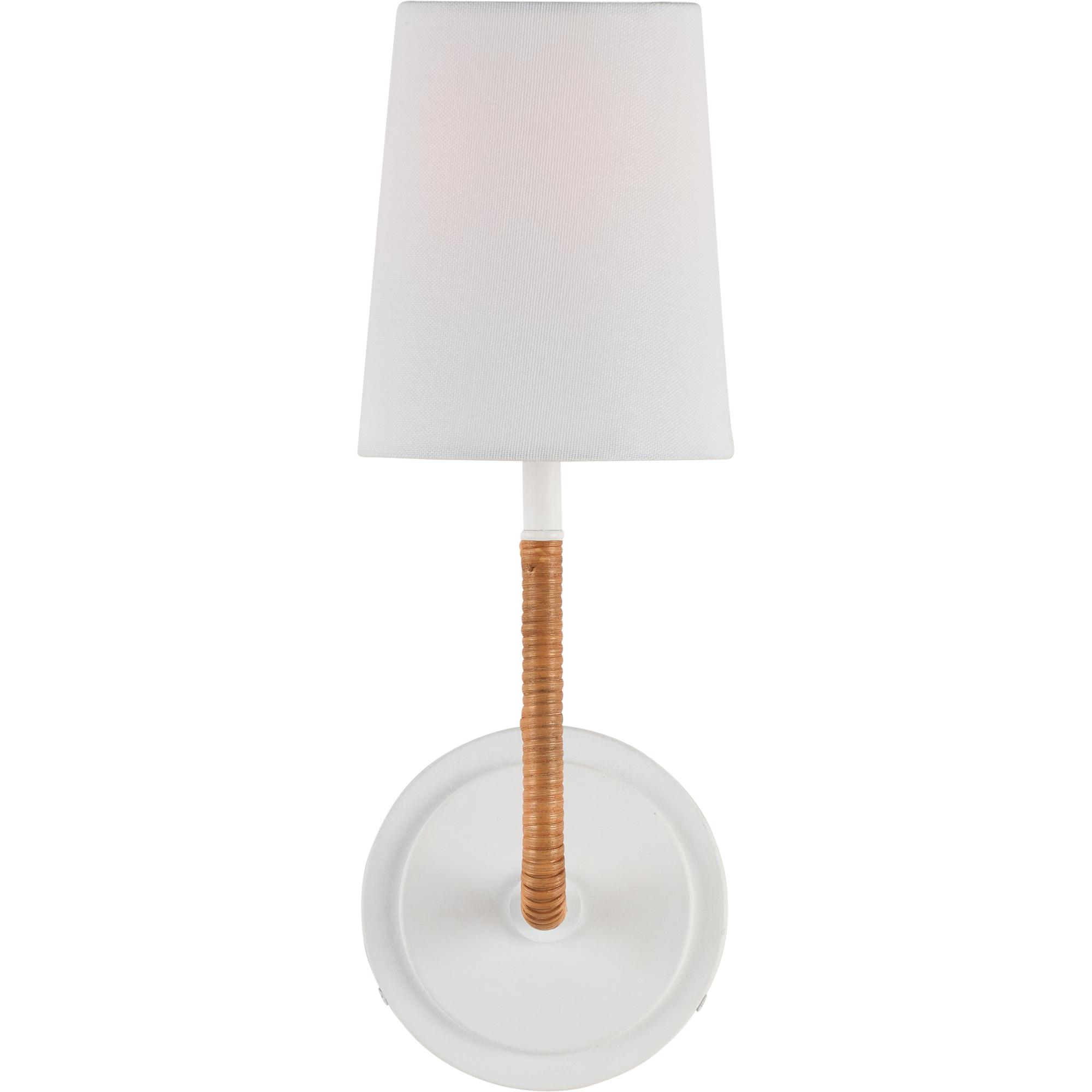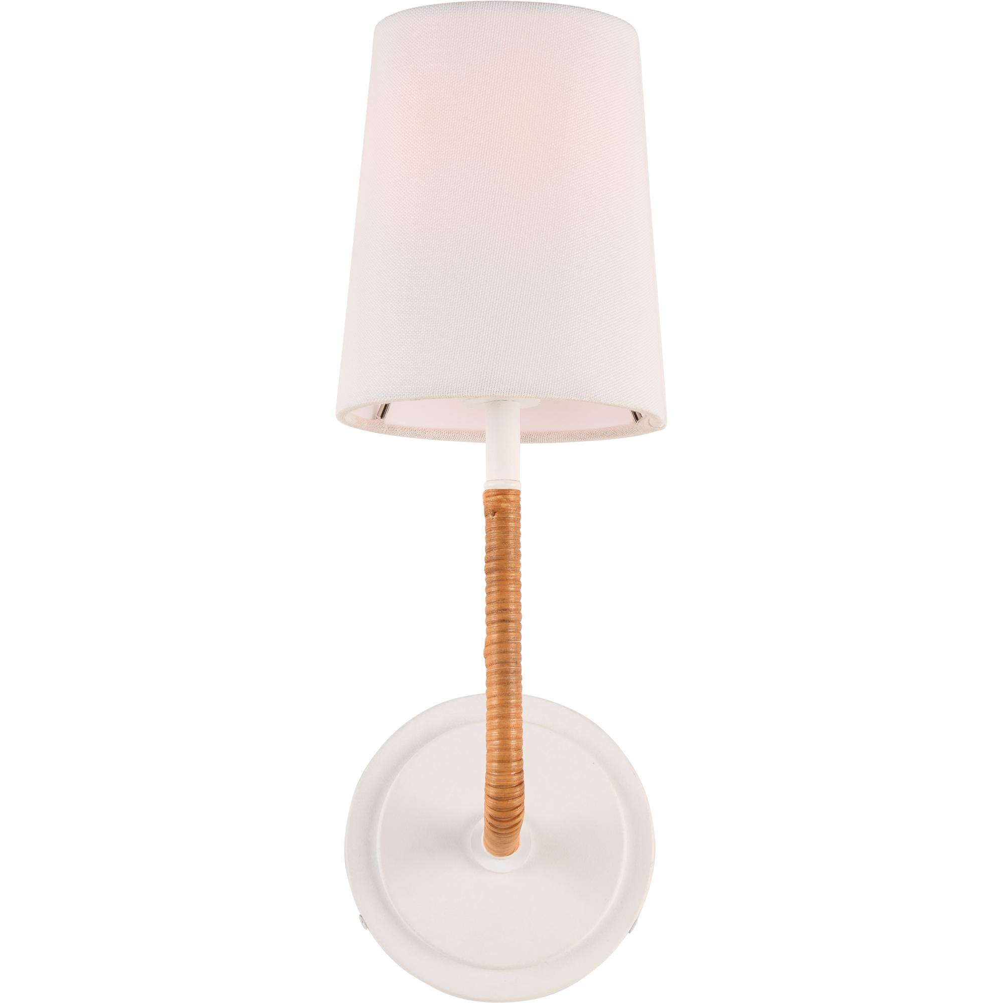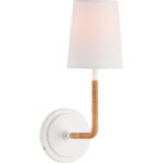 This elegant sconce features a sleek white finish, creating a clean and modern aesthetic. Its body is wrapped in natural rattan, adding a layer of texture and warmth that contrasts beautifully with the smooth metal. The woven rattan detail brings an organic touch, enhancing the sconce’s visual appeal while offering a subtle, handcrafted feel. Perfect for coastal, bohemian, or contemporary spaces, this lamp blends functionality with stylish design, casting a soft, in