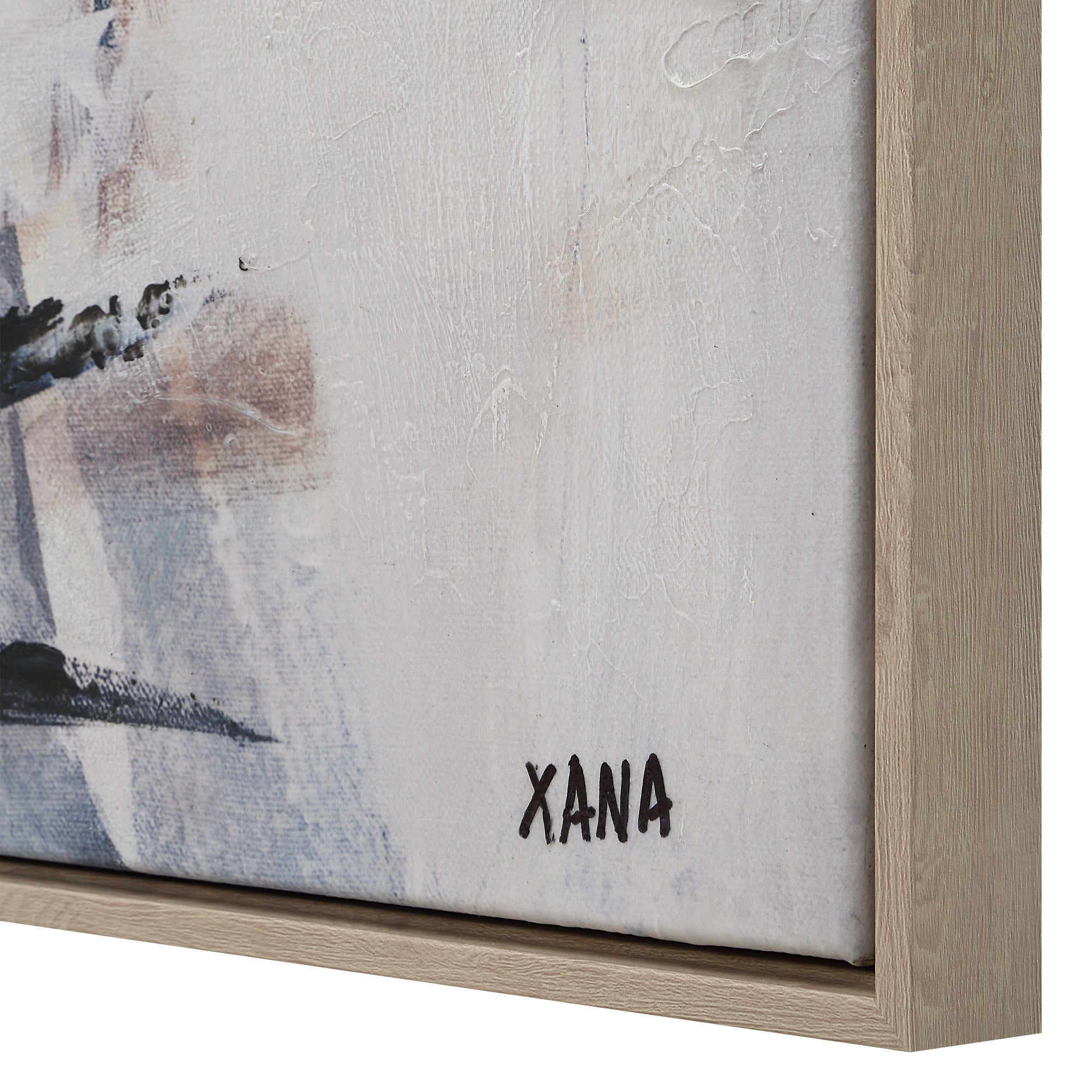 Infuse your design project with the artful presence of the Amelie canvas. Its modern edginess comes from its sweeping, abstract strokes, giving the piece a sense of mystery and depth. Hand-painted details enhance its moody character, while a light brown floating frame adds subtle sophistication. A striking choice for contemporary or transitional interiors looking to make a memorable impact.