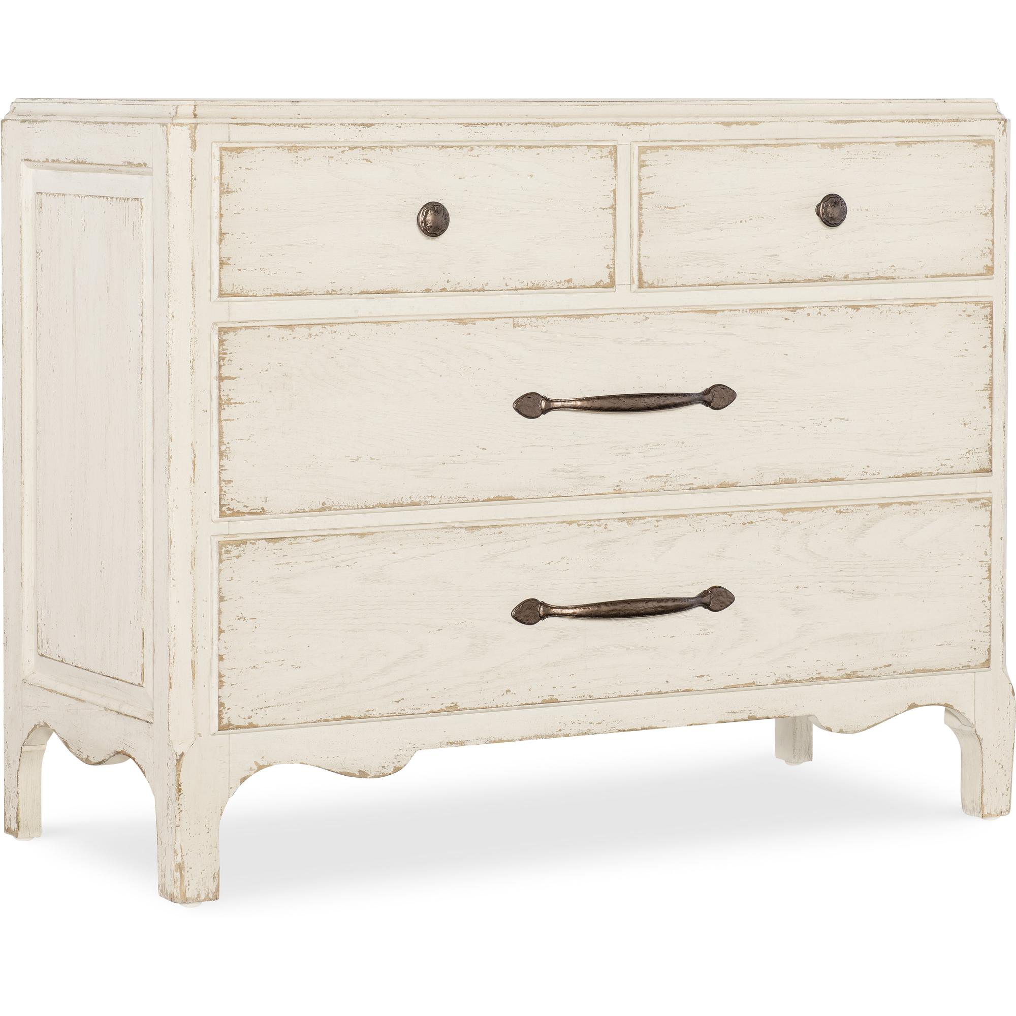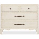 Finish: The Americana Daisy finish is a time worn white finish on cathedral oak veneers representing the natural wear one might expect of pieces passed down through the family over time revealing the rich oak character beneath. Metal alloy bar and knob pulls in an antique bronze finish.