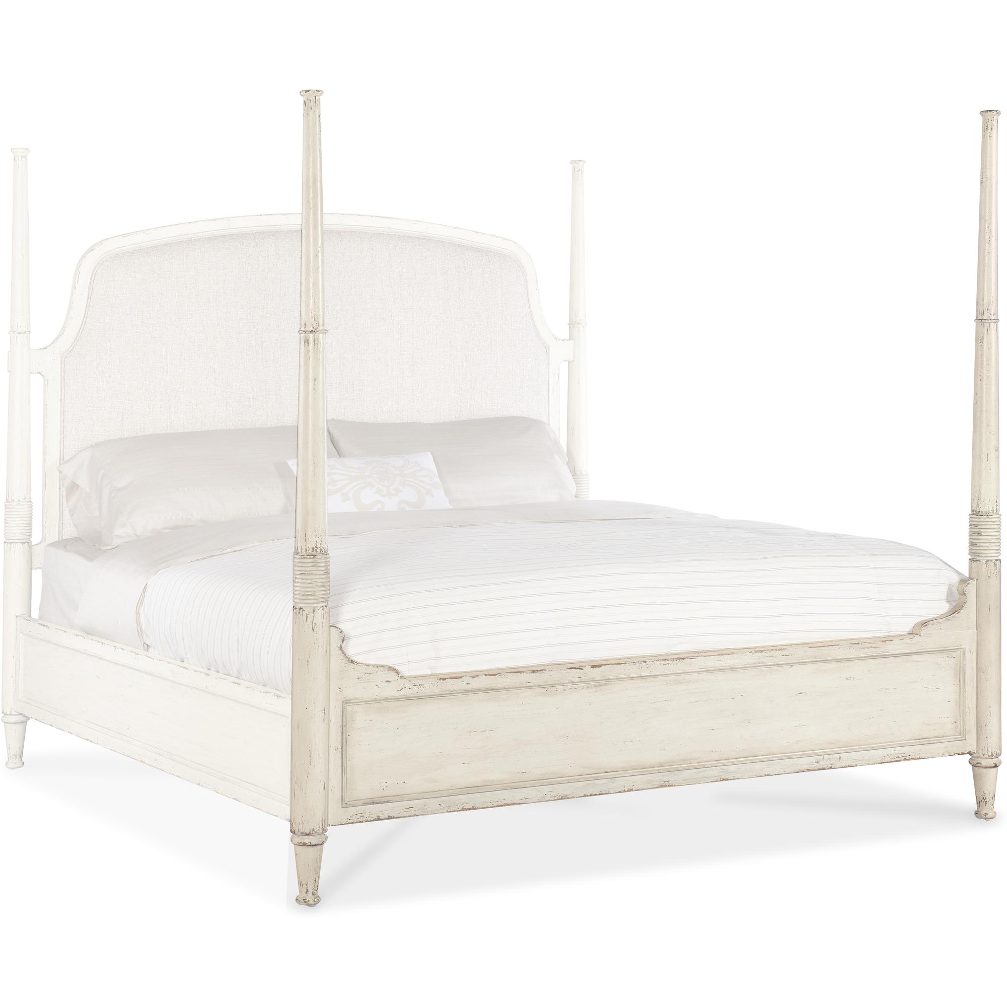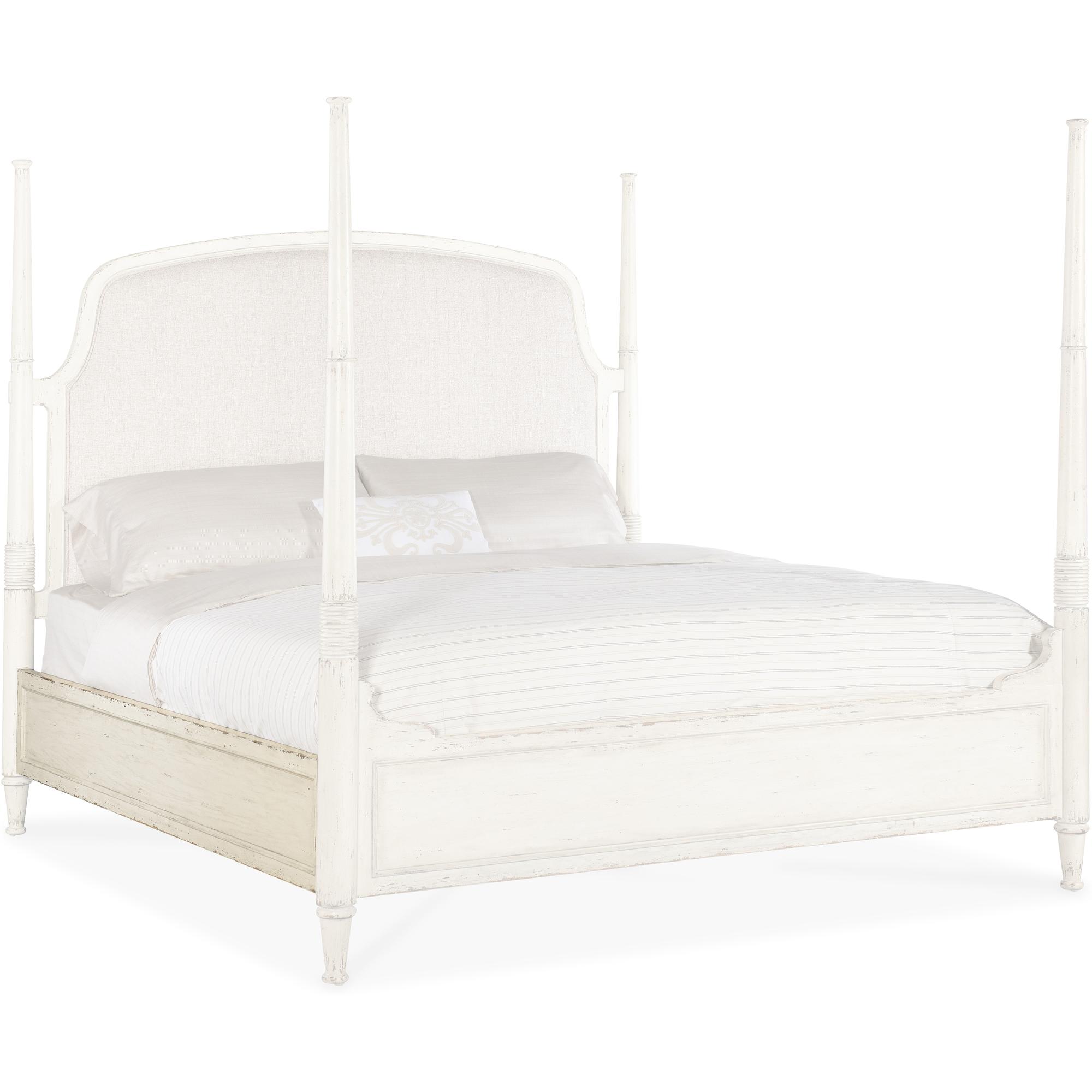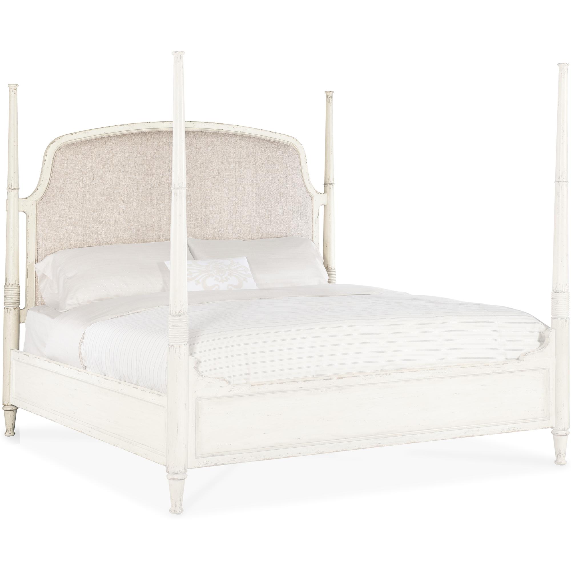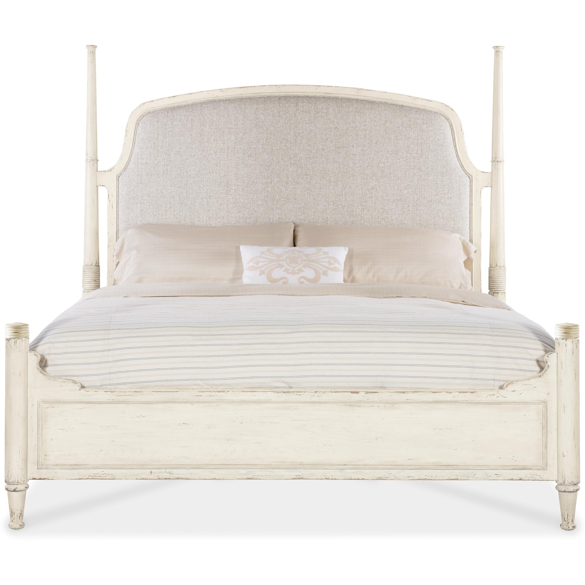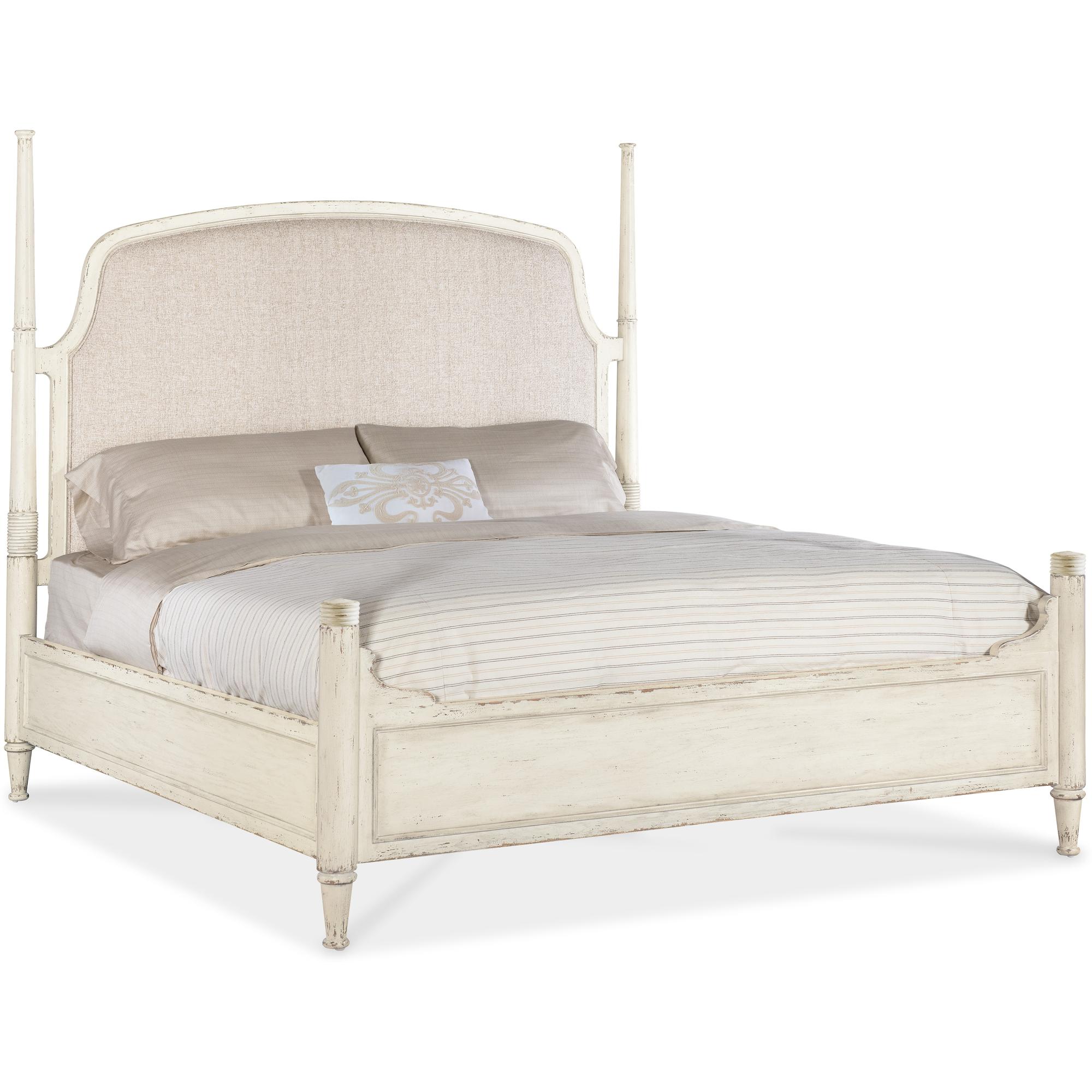 Features: Includes headboard, footboard and rails King size Upholstered fabric headboard Welt trim Footboard comes with caps for low post option 7050-90667-02 Headboard can be used alone Carved accents on posts