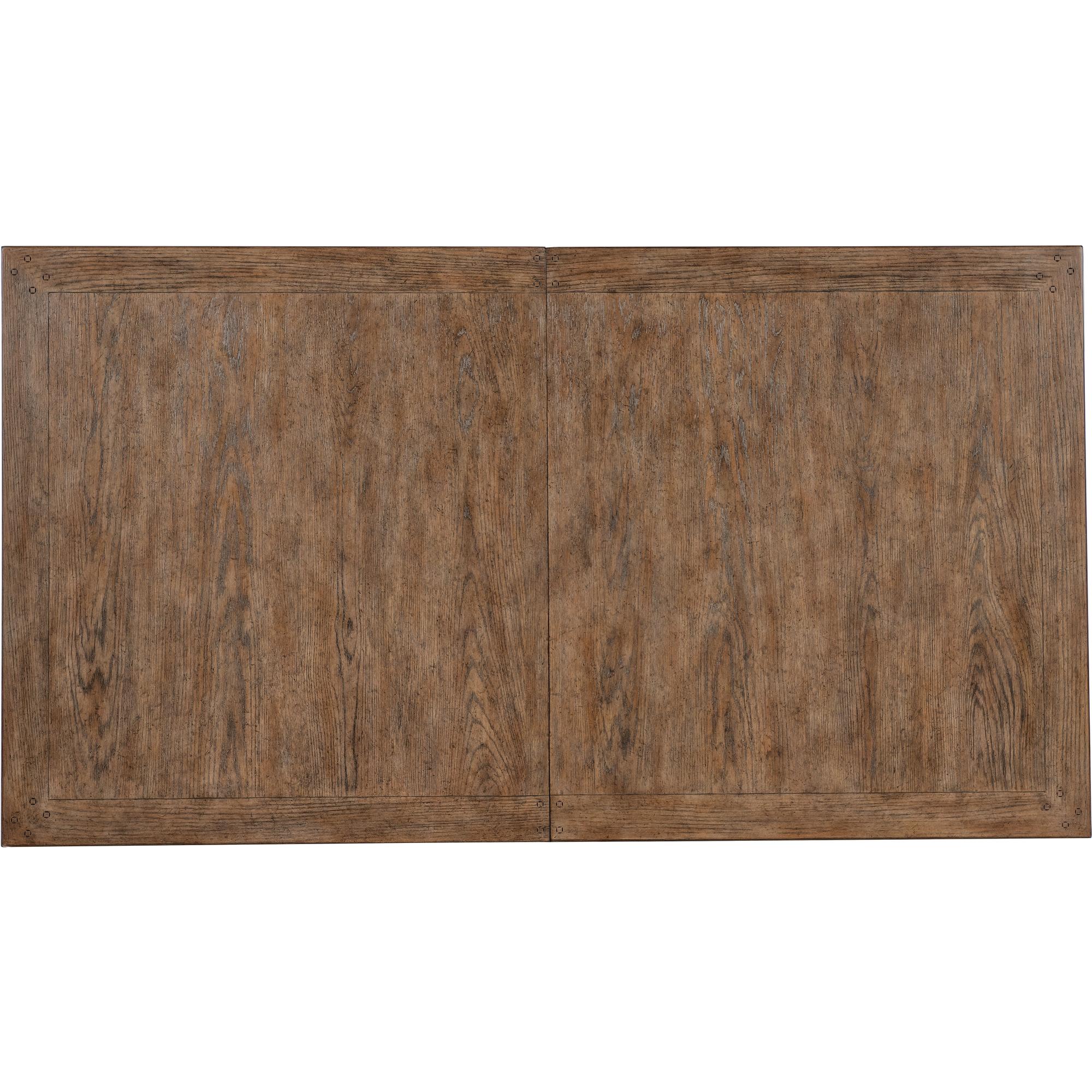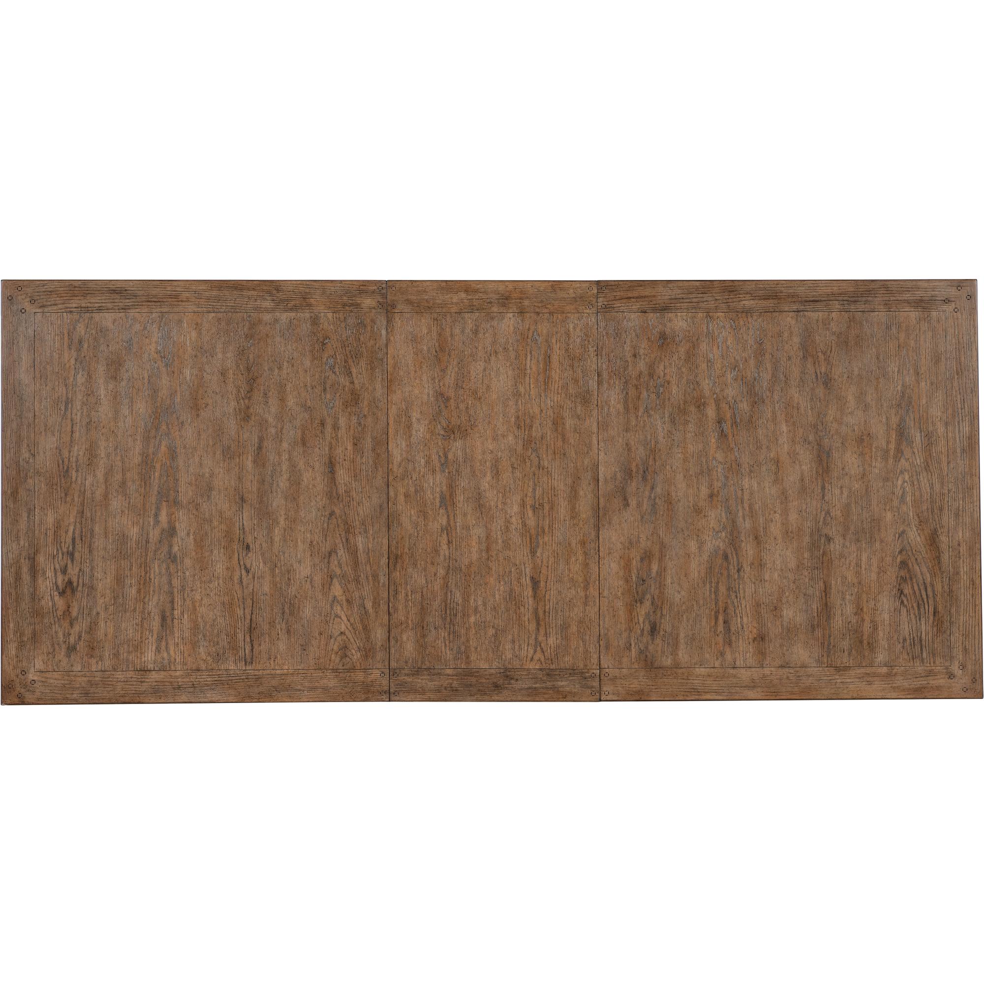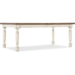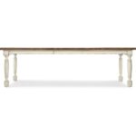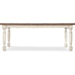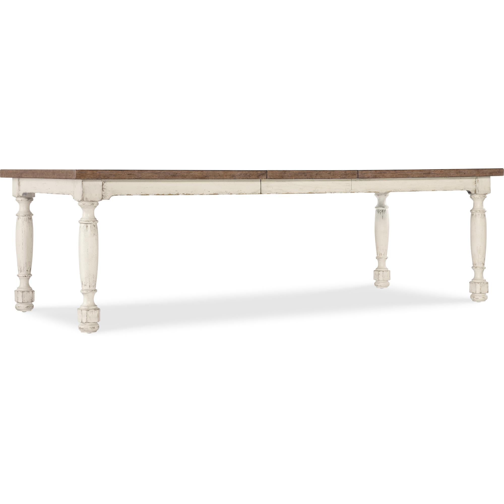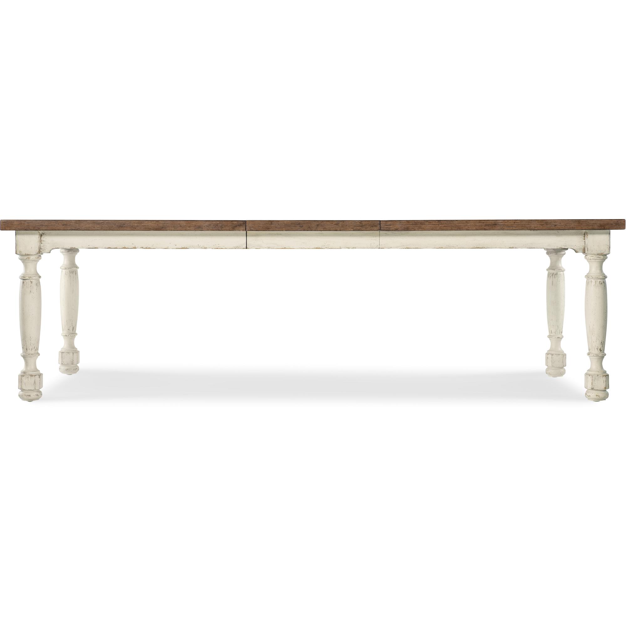 Features: One 22-inch leaf Table extends to 102-inches long with leaf in place Table accommodates up to six coordinating arm or side chairs without leaf Table accommodates up to two coordinating benches and two arm chairs without leaf Table accommodates up to four coordinating benches and two arm chairs with leaf in place Table accommodates up to eight coordinating arm or eight side chairs with leaf in place Two-tone finish Levelers