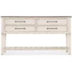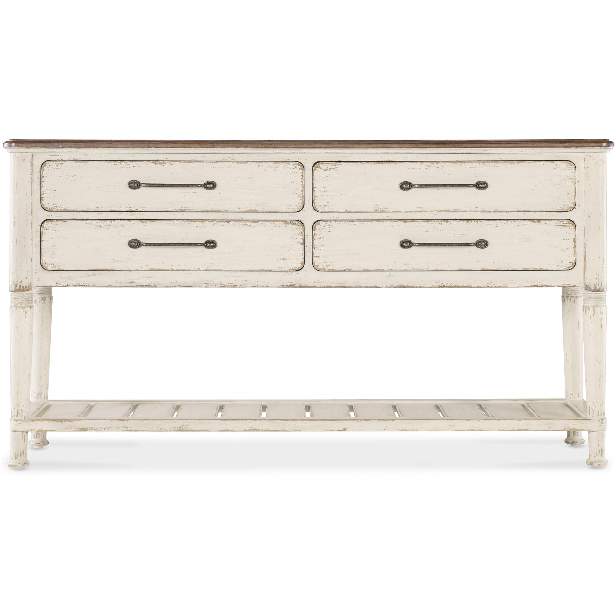 Finish: Daisy finish on base and Honey finish on top. The Americana Daisy finish is a time worn white finish on cathedral oak veneers representing the natural wear one might expect of pieces passed down through the family over time revealing the rich oak character beneath. The Americana Honey finish features a gentle, warm brown tone. The distressing hints at the passage of time, while the smooth surface invites you to run your fingers across it, connecting you with the generations who came before.