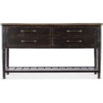 Finish: Molasses finish on base and Honey finish on top. The Americana Molasses finish captures the essence of a well-loved heirloom, passed down through generations. The deep, dark tone over cathedral oak veneers add warmth, while the variations in color reveal the natural beauty of the wood beneath. The Americana Honey finish features a gentle, warm brown tone. The distressing hints at the passage of time, while the smooth surface invites you to run your fingers across it, connecting you with the generations who came before.