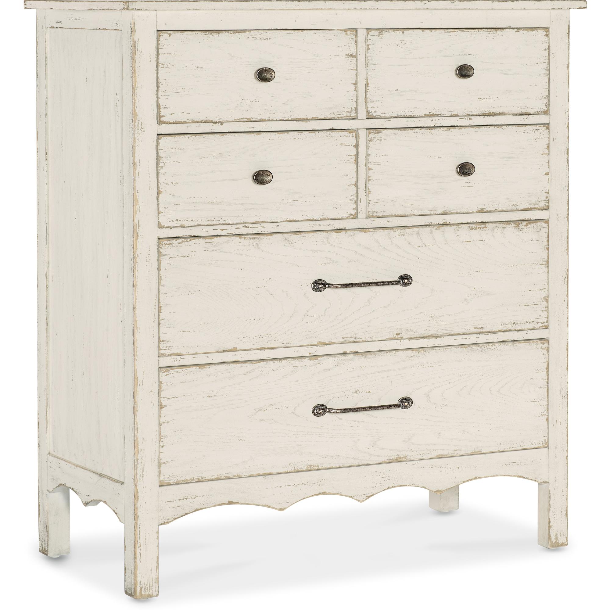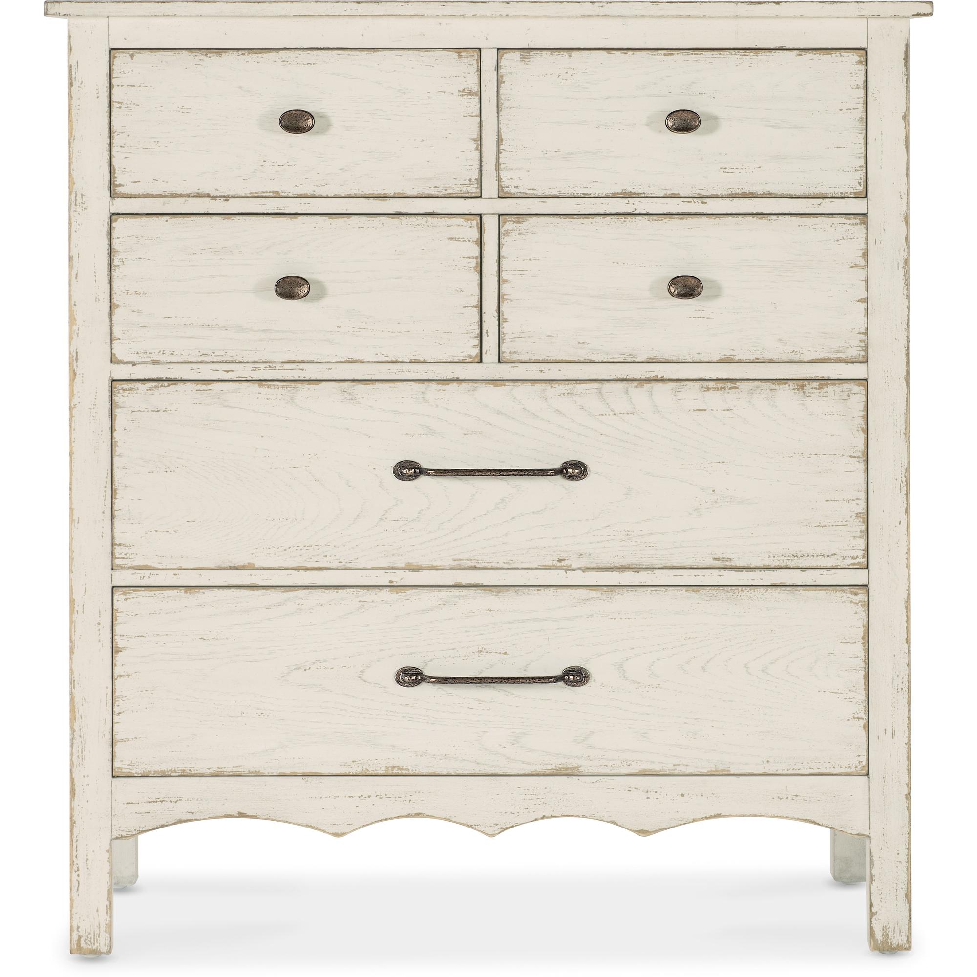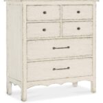 Finish: The Americana Daisy finish is a time worn white finish on cathedral oak veneers representing the natural wear one might expect of pieces passed down through the family over time revealing the rich oak character beneath. Metal alloy knob pulls in an antique bronze finish.