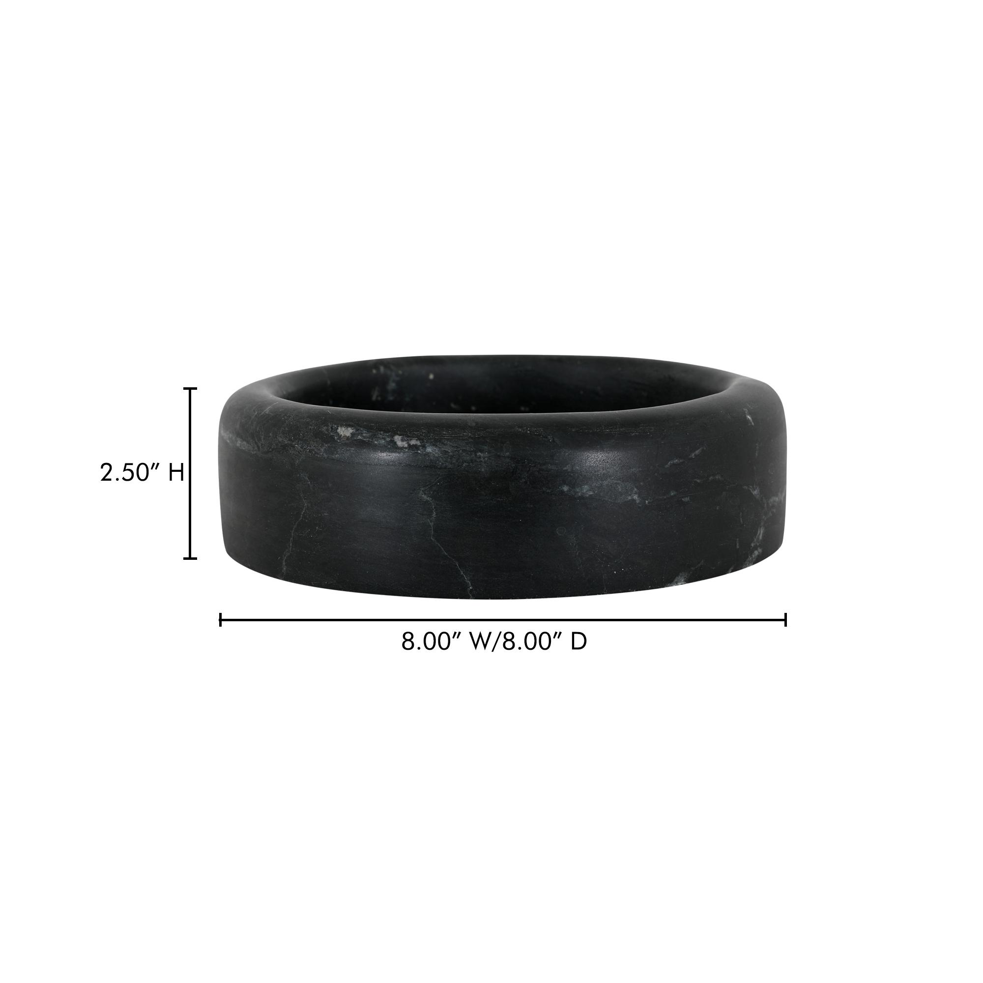 With a generous 8-inch scale and two separate pieces of marble for the top and bottom, the Anais catchall adds a vintage-inspired, elevated feel to any space. Crafted from solid black marble with distinctive white veining, each piece is uniquely elegant as it captures grandeur in practical design.