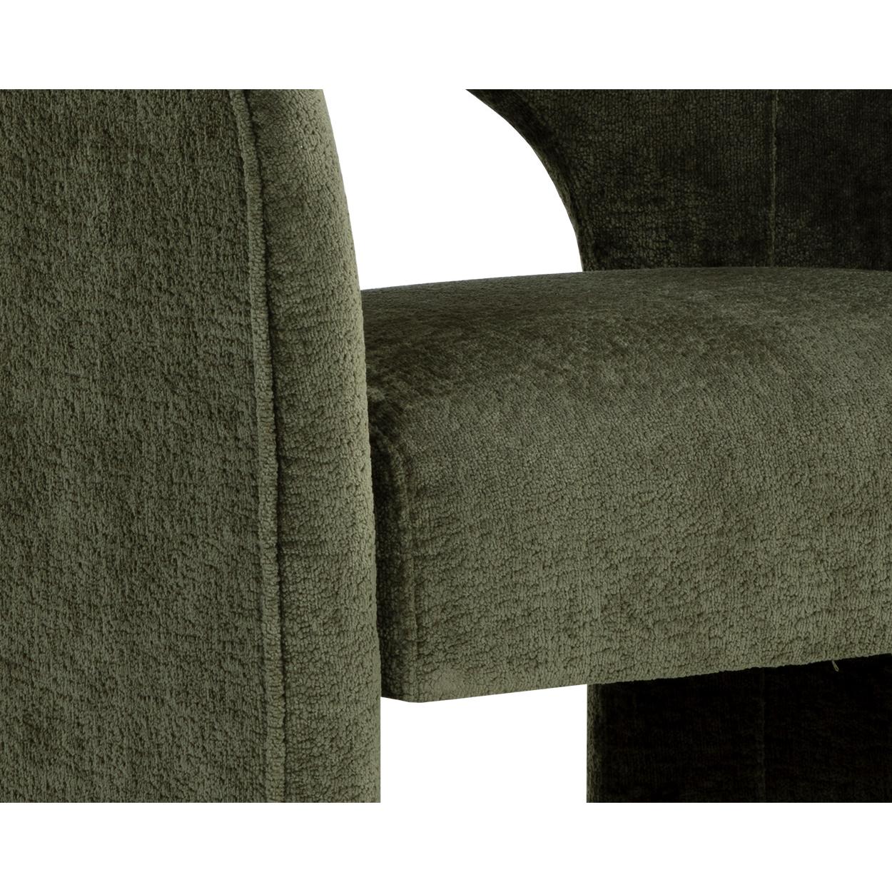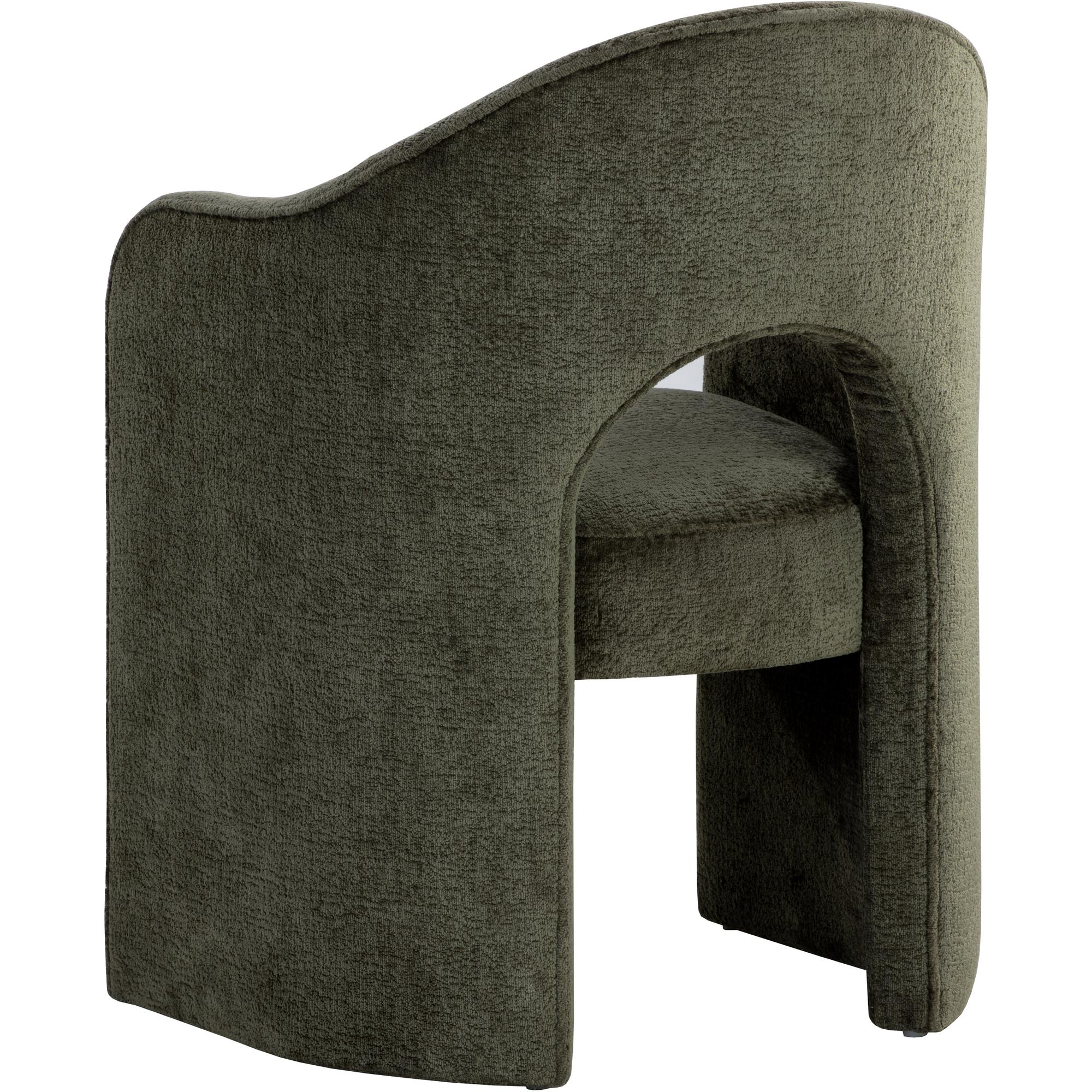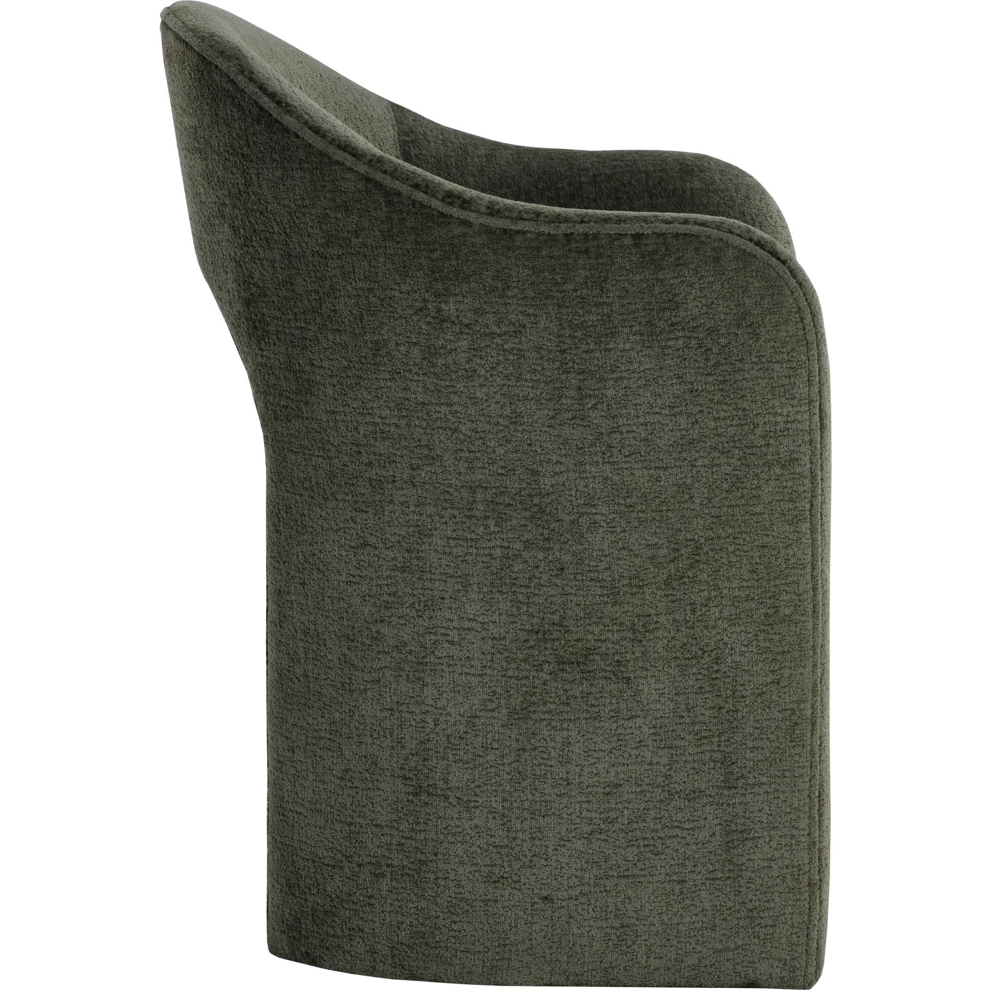 The appealing curves of the Anaya Dining Armchair will cradle you in exquisite comfort. Crafted with a beautiful arched silhouette that will add elegance to a dining table. Fully upholstered in our gorgeous bergen olive fabric for a versatile seat that can also be used as an accent chair.