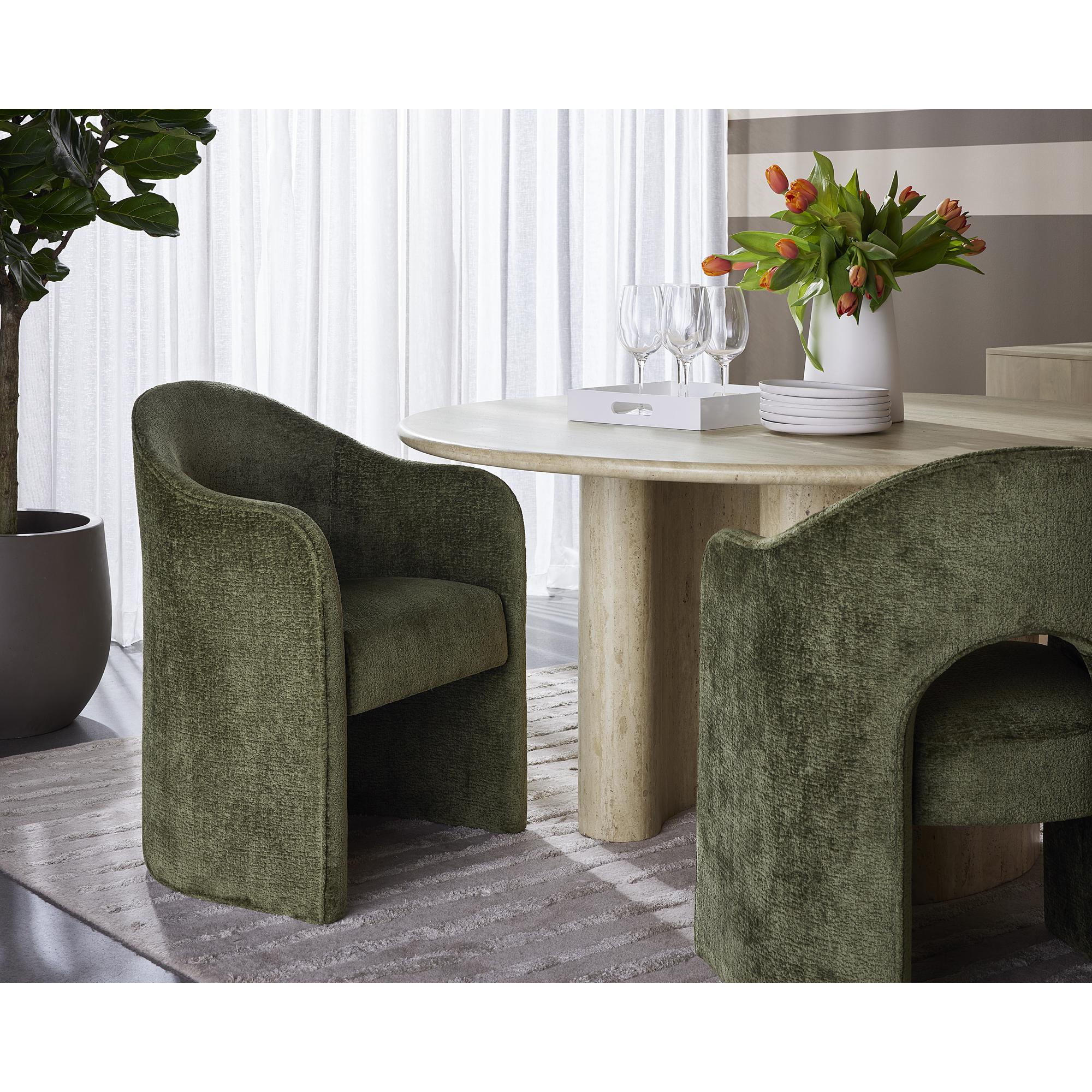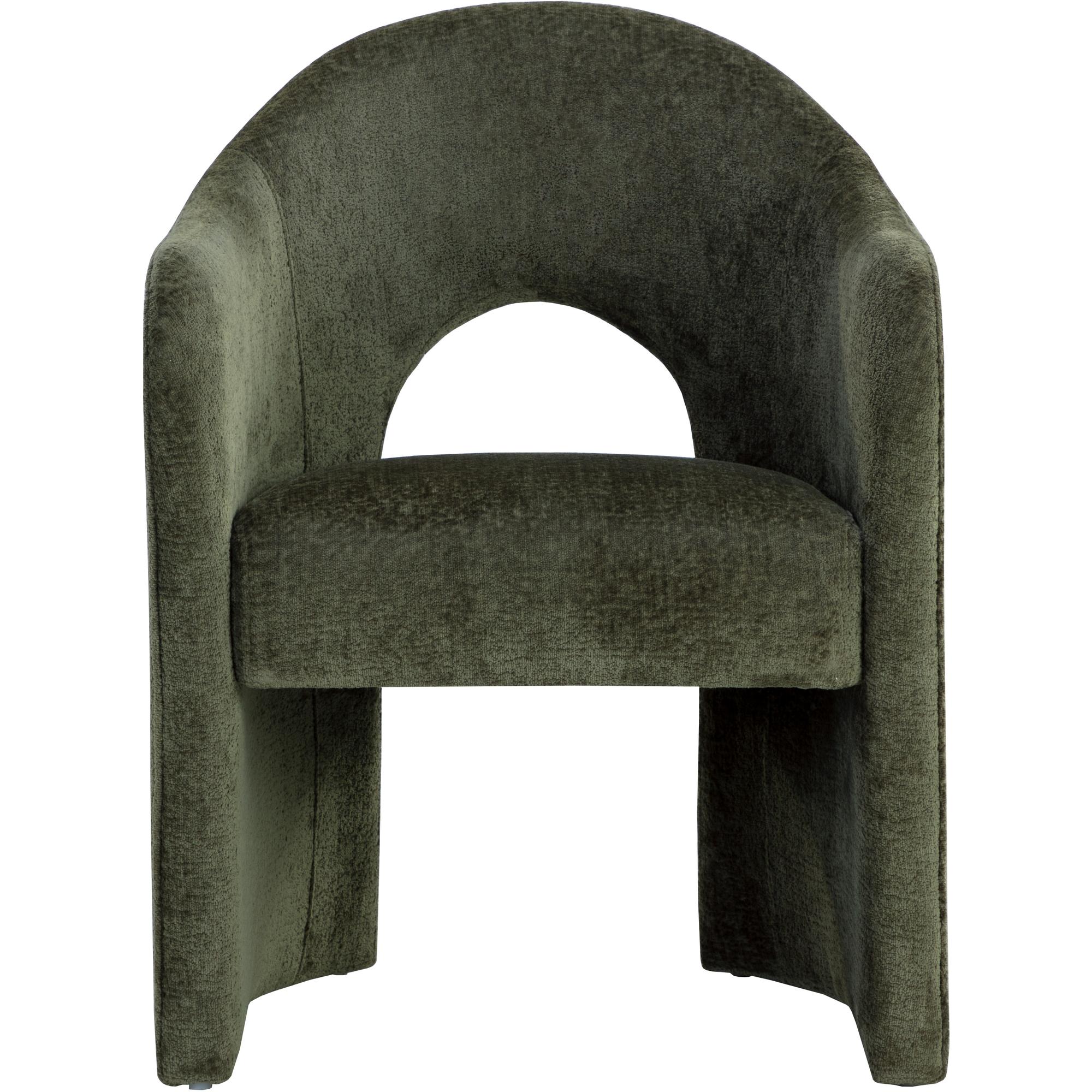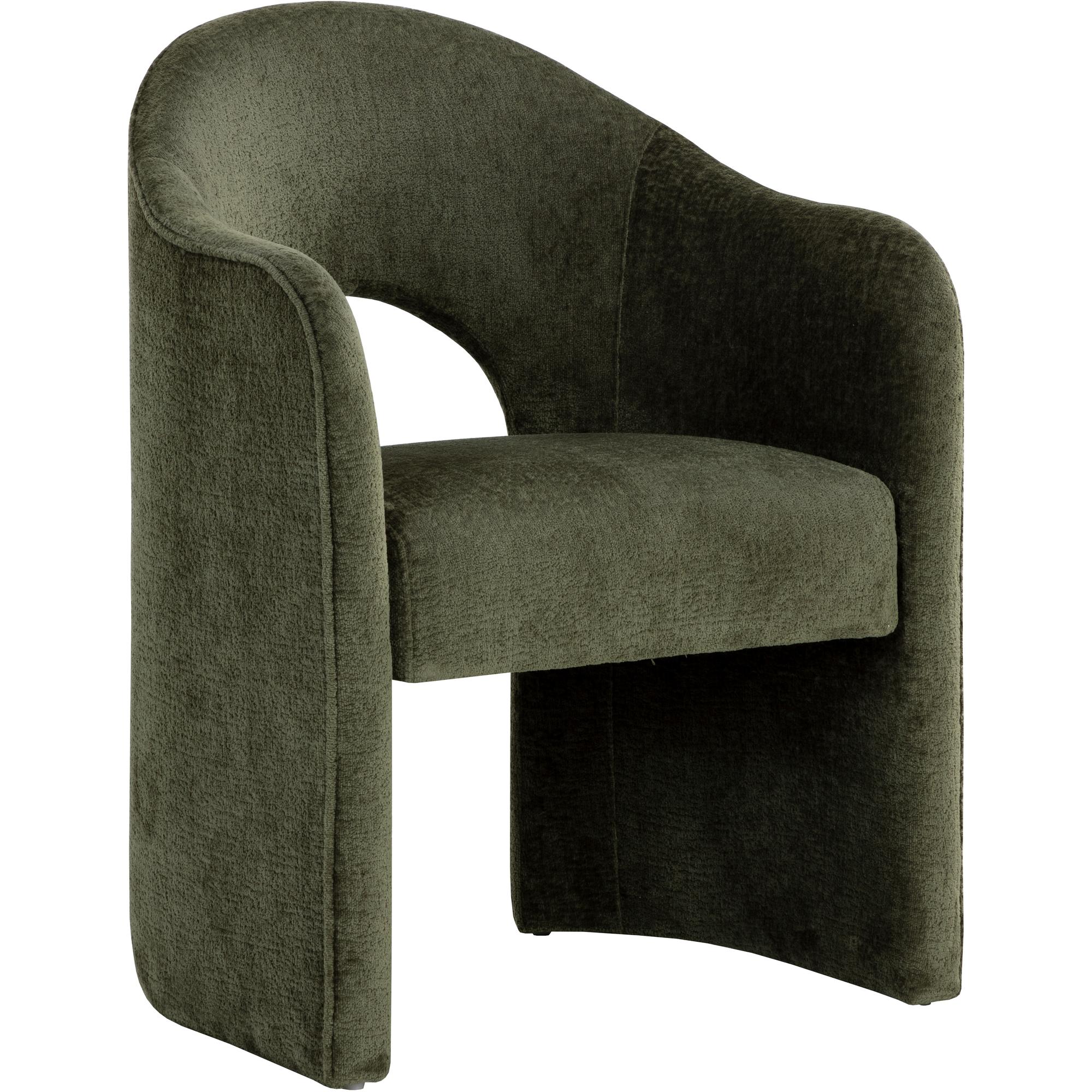 The appealing curves of the Anaya Dining Armchair will cradle you in exquisite comfort. Crafted with a beautiful arched silhouette that will add elegance to a dining table. Fully upholstered in our gorgeous bergen olive fabric for a versatile seat that can also be used as an accent chair.