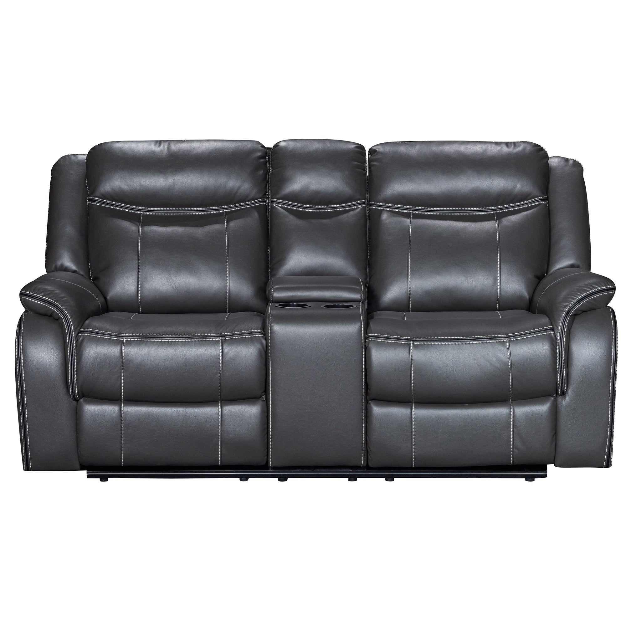 The ultimate in relaxation, the Anders Motion Loveseat is designed to be your go-to spot for comfort and convenience. Wrapped in sleek faux leather upholstery, it offers a durable, easy-to-maintain surface that’s built to last. With dual recliners and generously padded seating, you can stretch out in style while enjoying the smooth reclining action. The built-in center console with cup holders keeps your drinks and remote close at hand, perfect for movie nights or a quick nap. Thoughtful details like contrasting stitching and a space-saving wall hugger design make the Anders both functional and stylish—a great addition to any living room.