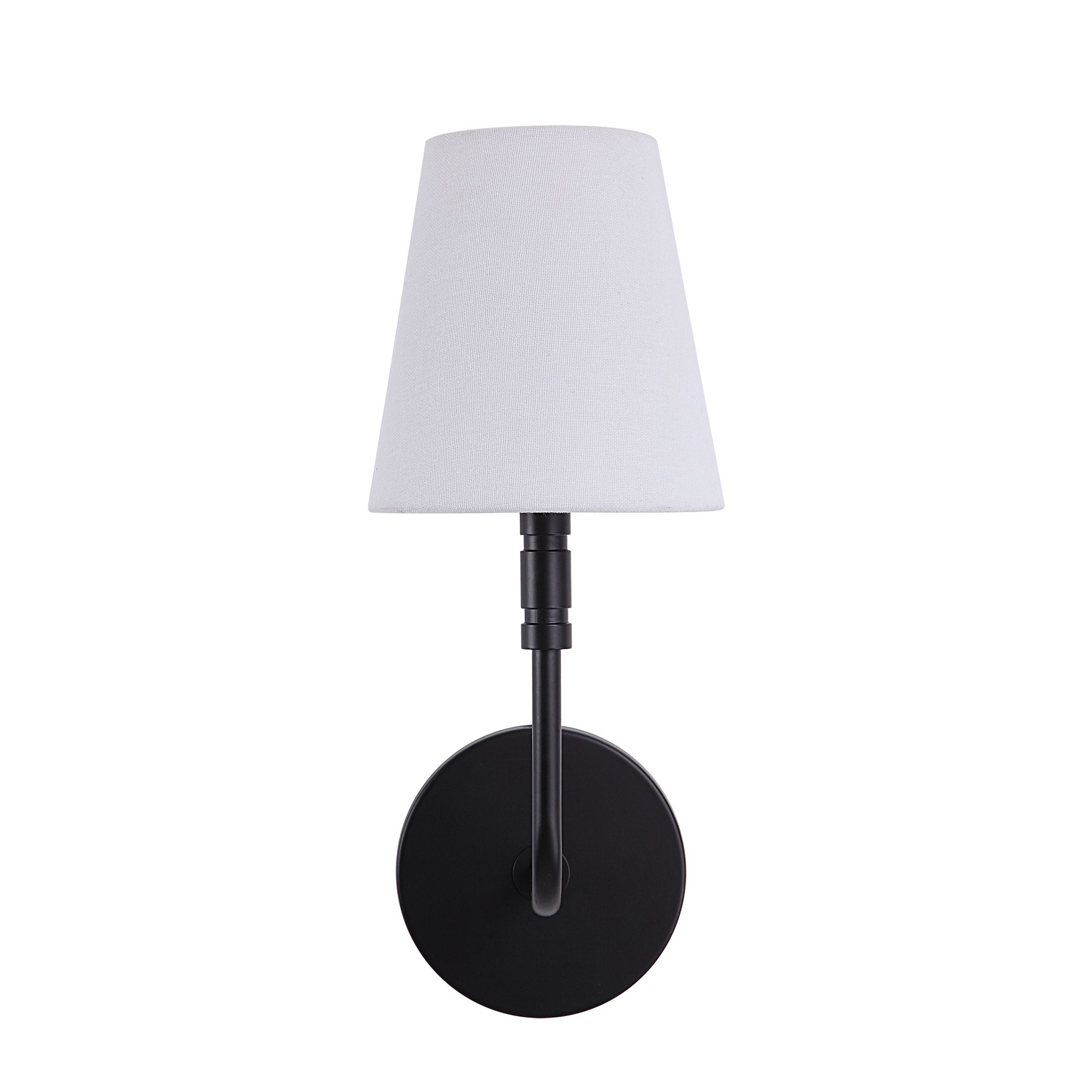 The Andi 14.5″ Matte Black 1-Light Wall Sconce is the perfect addition to any home seeking a sleek and modern look. Its seamless connection to standard E12 sockets provides ease of use and functionality. The robust iron wall canopy ensures that the fixture remains secure and stable. This sconce supports bulbs up to 40W, making it compatible with a wide range of lighting options. This hardwired installation offers reliable and integrated performance, adding to the overall value of this stunning piece. With its chic design and exceptional features, the Andi 14.5″ Matte Black 1-Light Wall Sconce is sure to elevate any space with its presence.