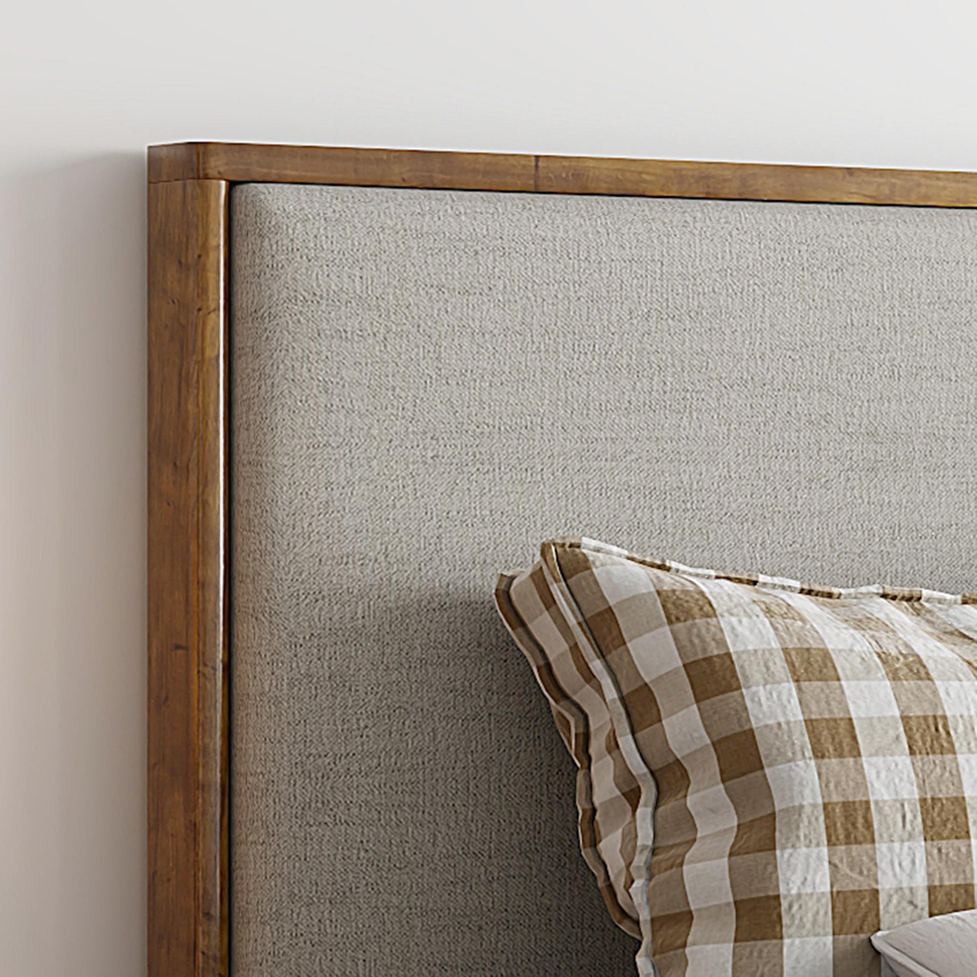 - Solid wood, walnut-finished frame surround on high headboard