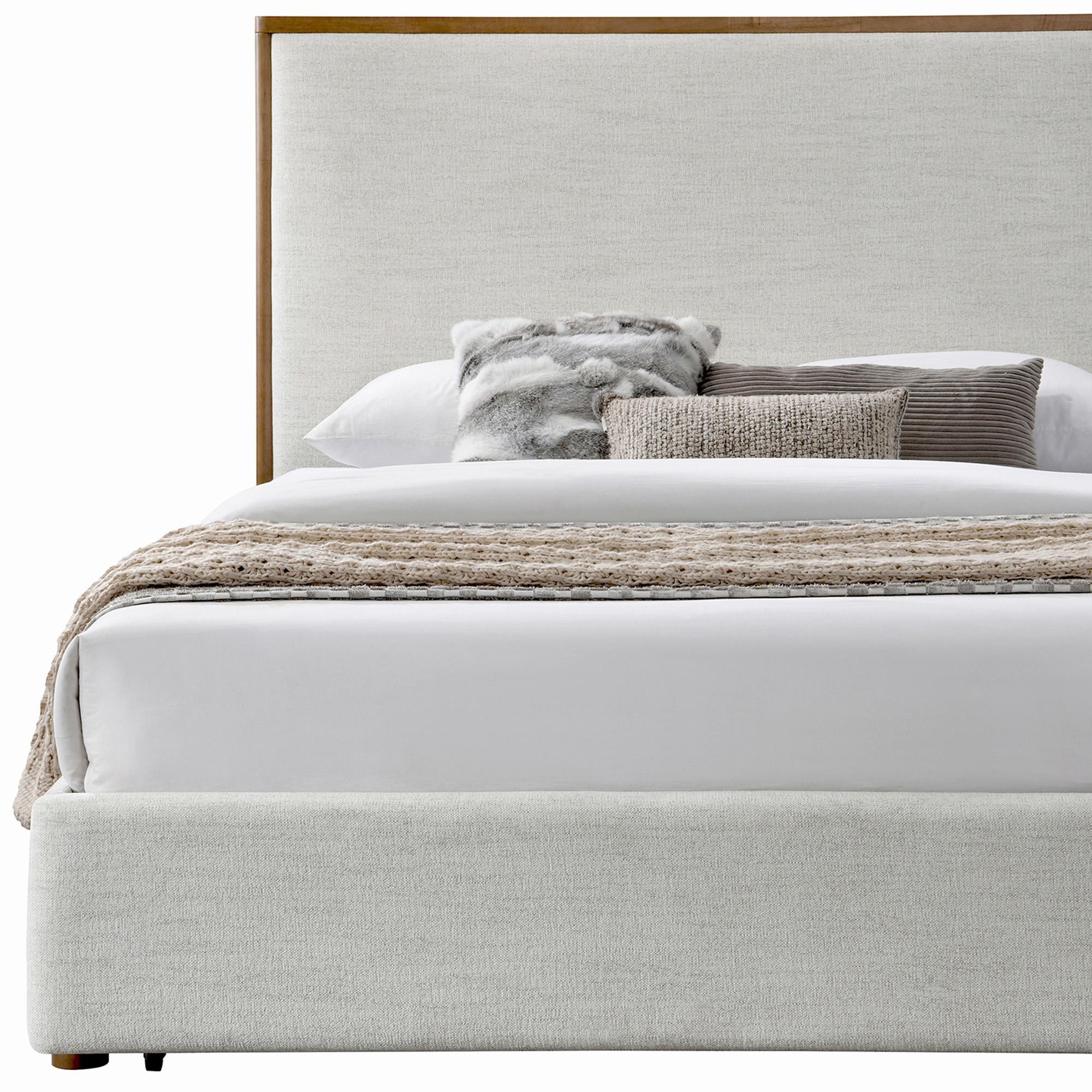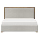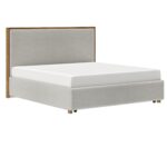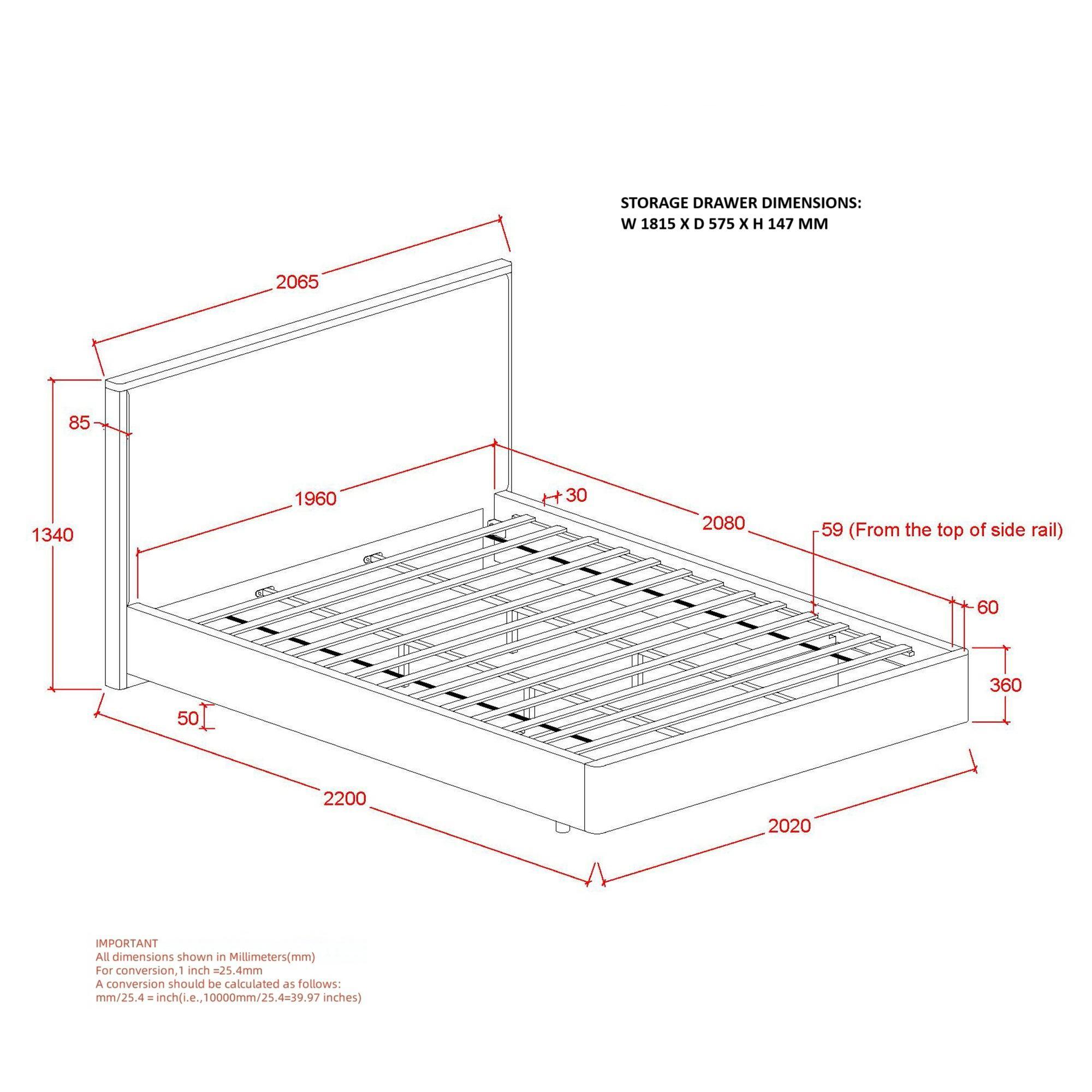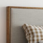 Majestic platform bed makes a statement with the high headboard. The plush upholstered headboard has a solid wood, walnut-finished surround, giving the piece an impeccable tailored look. The spacious wooden storage drawer in the footboard rolls out for easy access and is the perfect place to store extra bedding, cushions, or your prized shoe collection. Great for a primary bedroom or at the cottage.