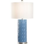 Lovely ceramic lamp in blue with a metallic silver raised design. Designed by Shayla Copas.
