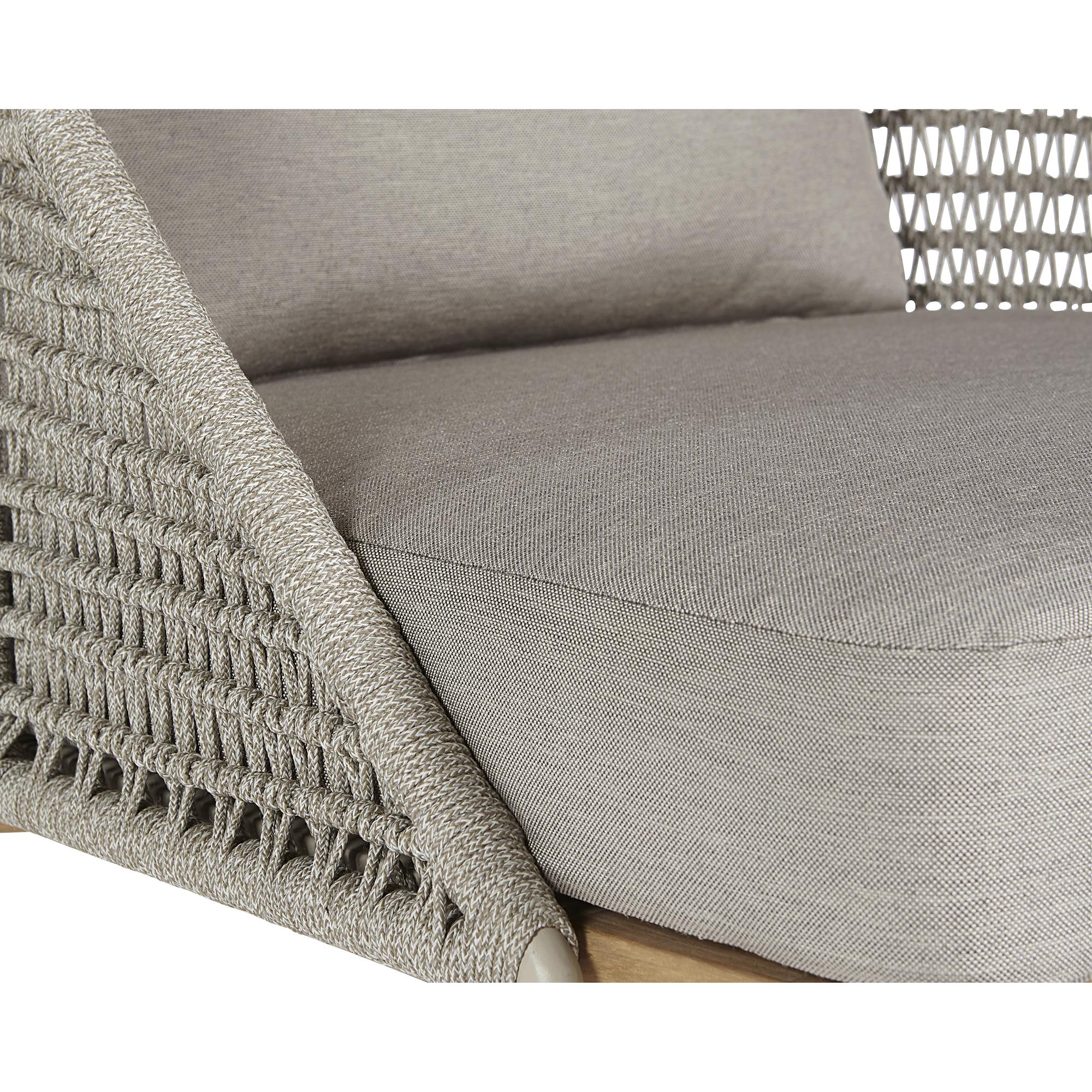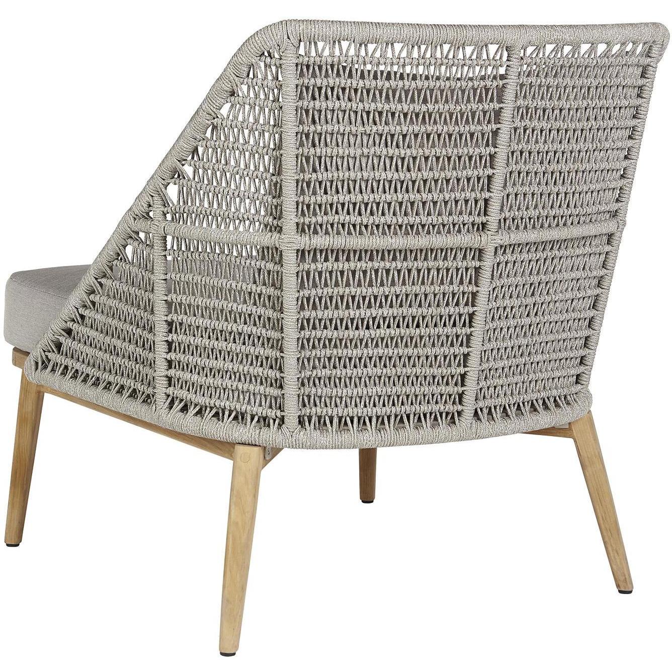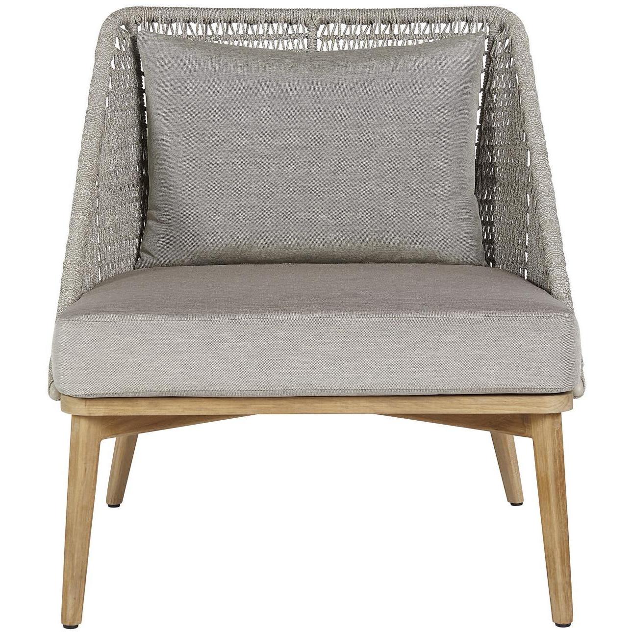 Lose track of time while relaxing in this outdoor lounge chair from the new Outdoor by SUNPAN collection. This modern design features a tapered seatback covered in greymix weave with a palazzo taupe seat and natural teak wood base. Suitable for indoor and covered outdoor spaces.