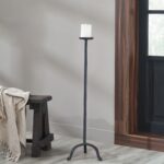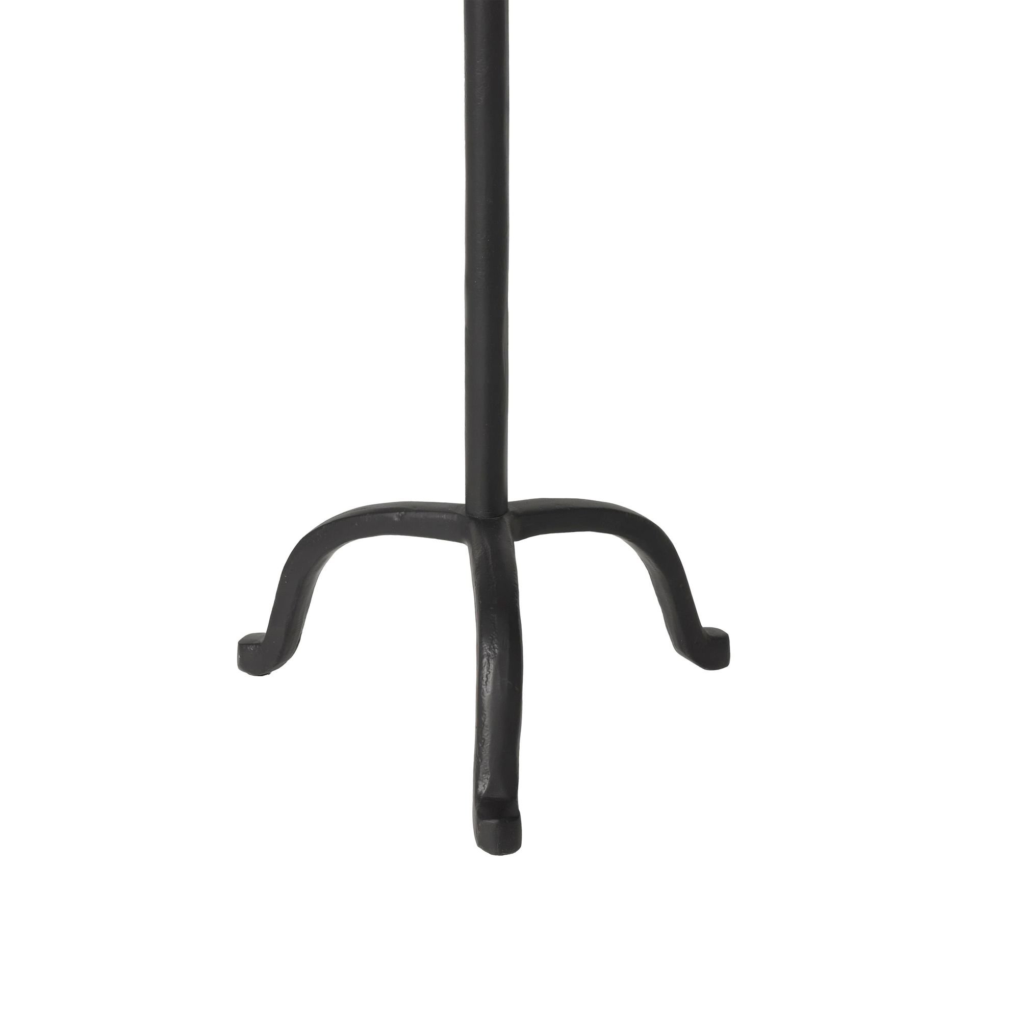 Create a warm and welcoming vibe in any interior with this artfully designed floor candle holder. Crafted with a matte black-painted finish, this cast aluminum piece has a hand-forged look and feel that delivers style and function to your transitional decorating scheme. Add the candle of your choice for an instantly cozy glow.